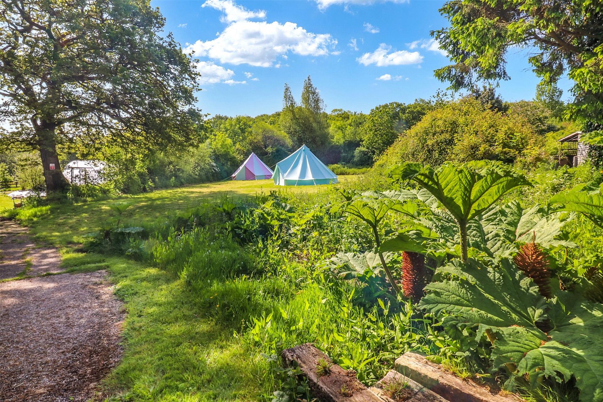 The farm land is approximately 7.5 acres in three distinct field enclosures with a stream acting as the boundary along one side. These currently form part of the area where bell tents and campervans can pitch.