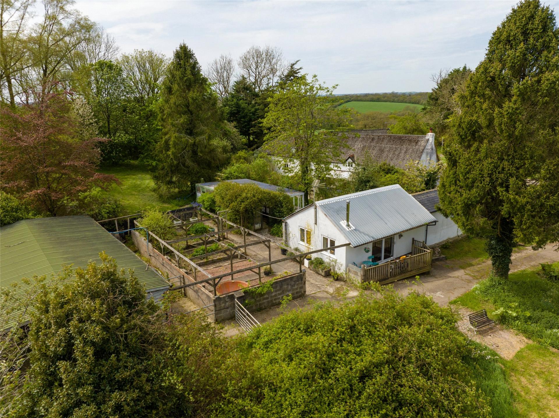Fronting the road and with pedestrian access from the farmhouse garden, is a triple garage (one with water) that is connected to the reverse of the cob barn. A former double garage leads off the drive and is currently set up as a games room with work bench, power and light.