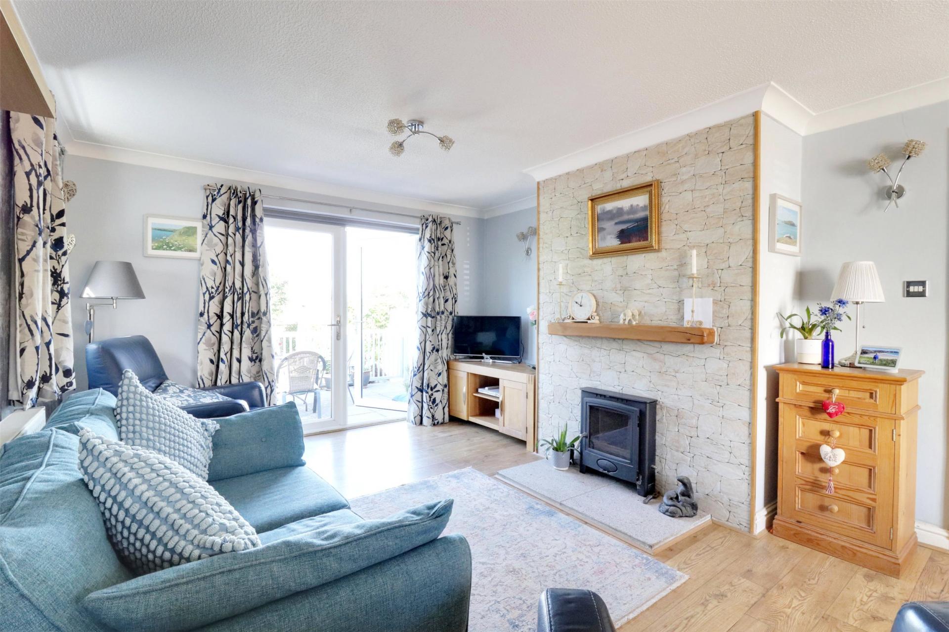 The hallway leads into a wonderful open plan sitting/dining room with a multi- fuel burner and double doors opening out onto the rear paved terrace. This room is perfect for enjoying of an evening or indeed entertaining guests. Found next to this is the wonderful kitchen/breakfast room, re -fitted by the current vendors with stunning deep blue faced units and a white granite worktop above, inset ceramic one and a half bowl sink with drainer unit, space for a free -standing fridge/freezer and a gas hob with oven. This room will also hold a table and chairs as well as a sofa creating another perfect entertaining room with another set of double doors opening out to the rear.