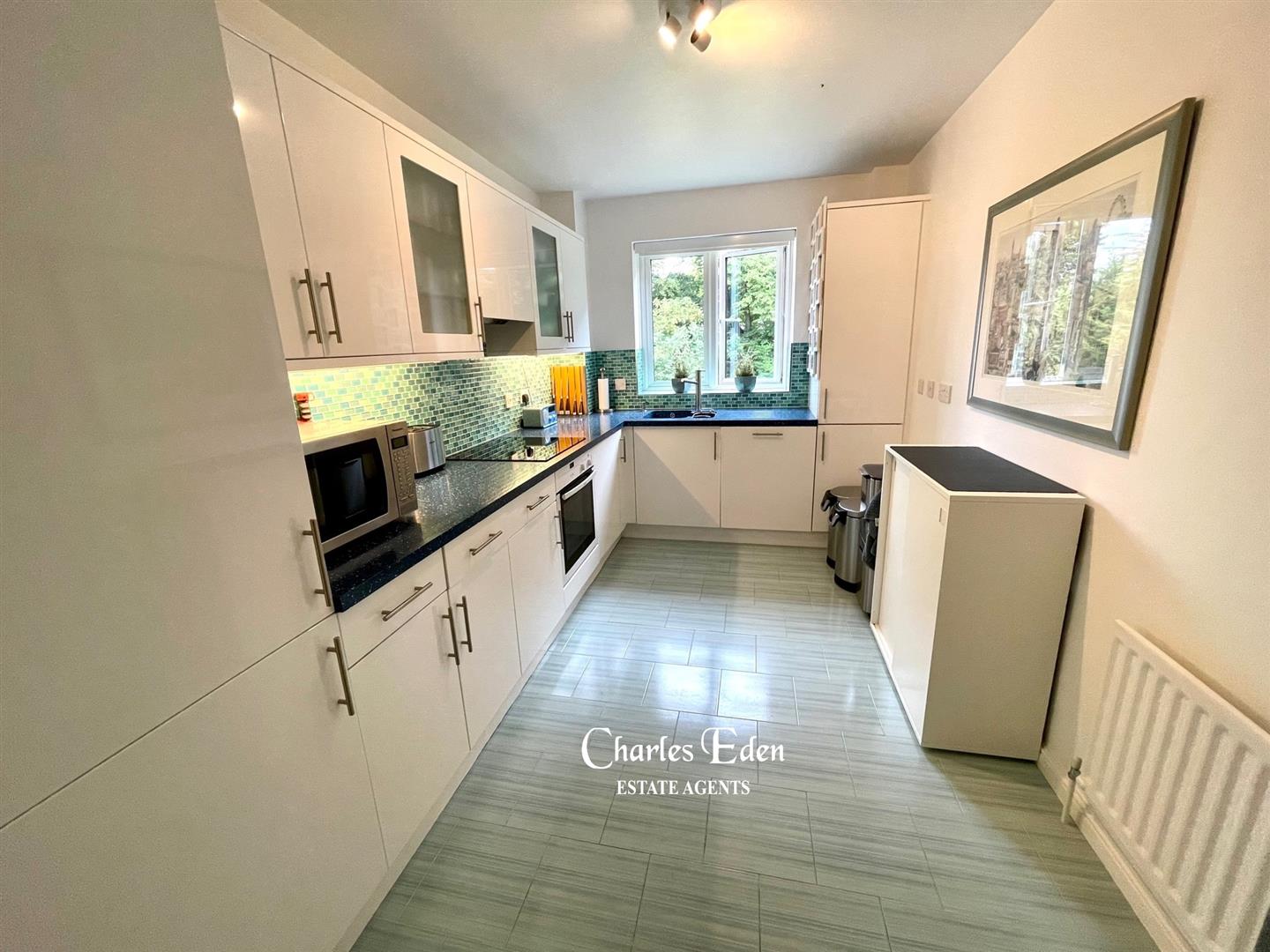 Kitchen - 4.32m x 2.41m (14'2 x 7'11) - Double glazed window to rear, 1 1/2 bowl sink unit inset in work surfaces, range of fitted wall and base units with 'Corian' worksurfaces over, 'NEFF' electric oven, four ring hob, with hood over, integrated fridge freezer, dishwasher, washing machine, cupboard housing gas fired 'Worcester' boiler (not tested by Charles Eden), radiator, ceramic tiled flooring.
