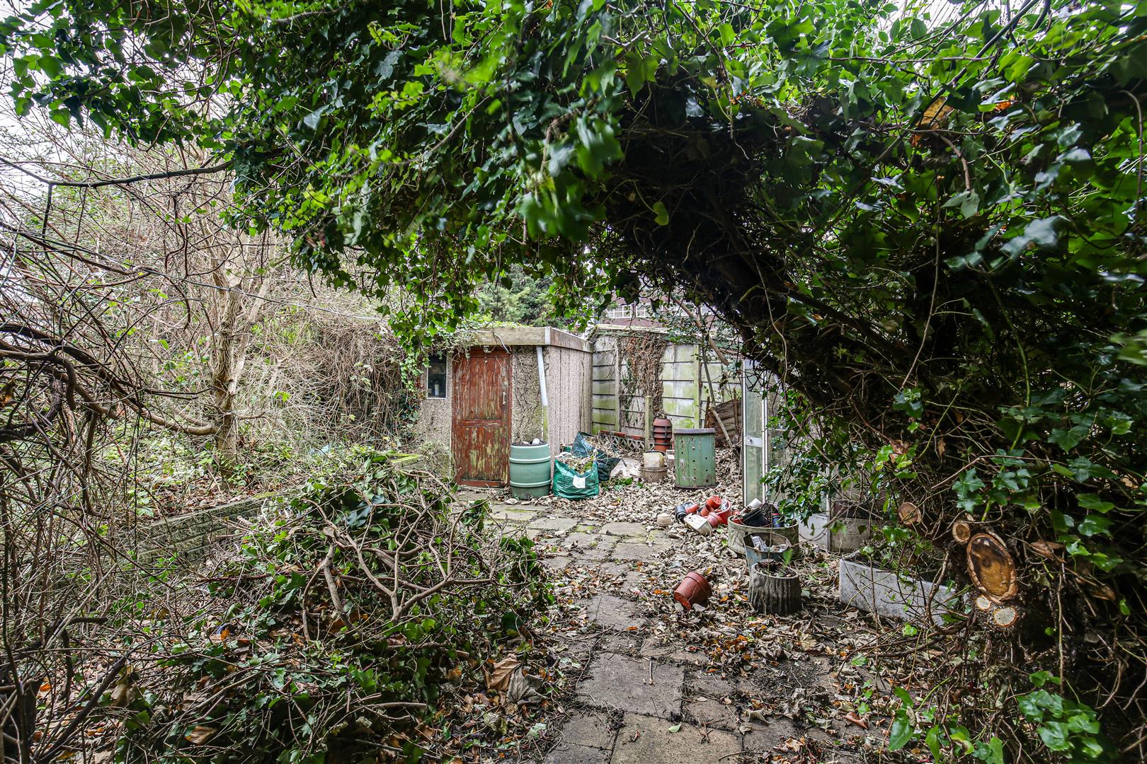 Rear Garden - 10.67mft - 12.19mft approx (35ft - 40ft approx) - Paved with shrubs. Access to garage.