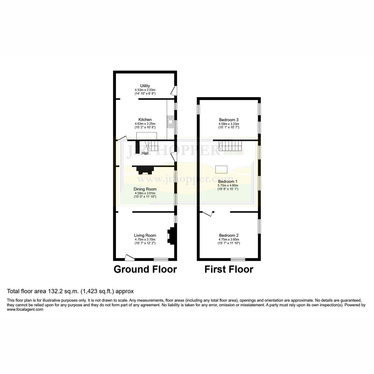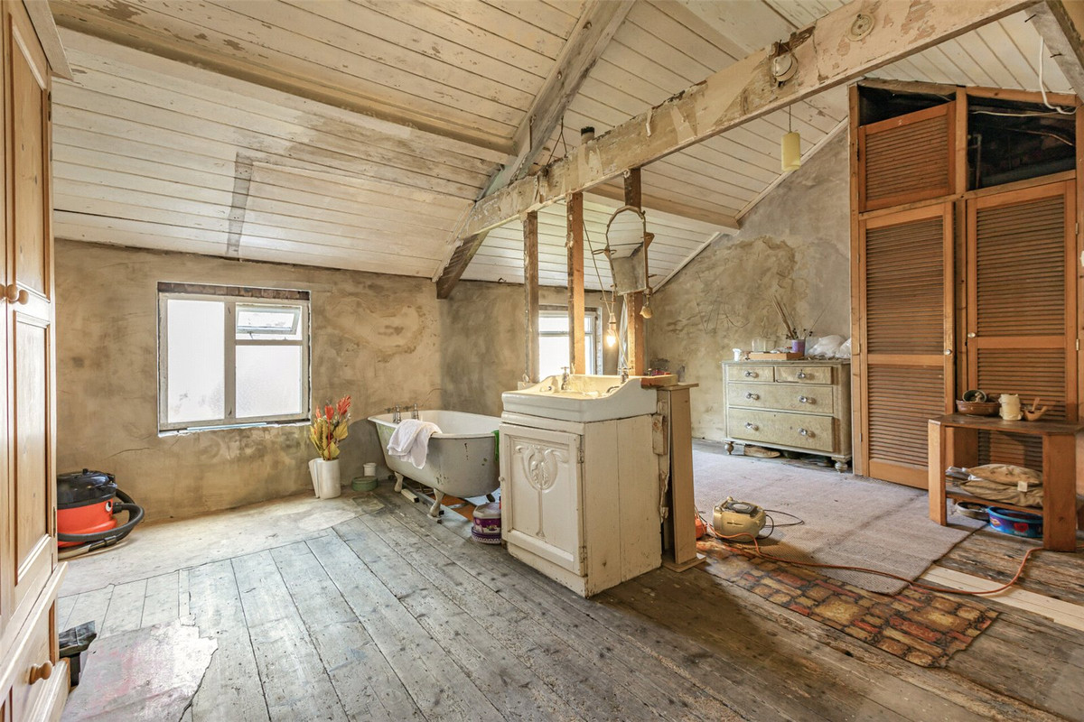 The property presents fantastic scope and currently to the ground floor you enter via an entrance hallway which leads to a living room with an open fireplace, a dining room also with an open fire, a kitchen, and a separate utility room. On the first floor, there are three generously sized double bedrooms and space available to install a family bathroom.