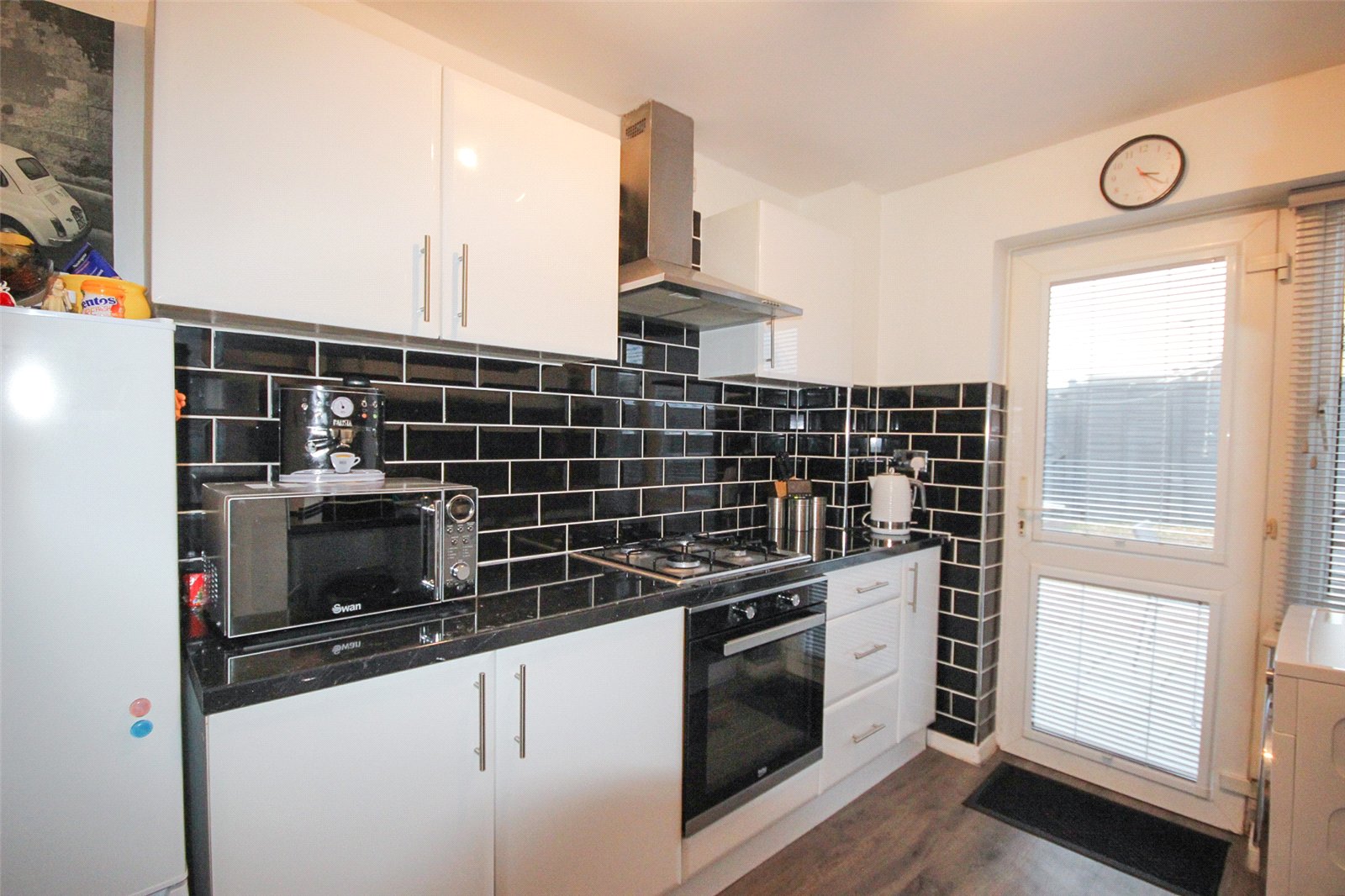 Entrance into a welcoming hallway, with storage space for shoes and coats. There are stairs to the first floor, and a door to the generous lounge/diner. The room spans the length of the property, and benefits from a curved window to the front aspect, and doors to the rear garden from the dining area. There is also a convenient storage cupboard underneath the stairs. A door from the dining area takes you to the modern kitchen, fitted with a range of wall and base level units, with ample worksurface space. The kitchen further benefits from a double glazed door to the rear garden. On the first floor a bright and airy landing leads to all three bedrooms, a storage cupboard and a refitted shower room. Bedrooms one and two are generous double rooms, with wide windows allowing plenty of natural light in. Bedroom three is a good size single room, with the additional benefit of built in storage. The contemporary refitted shower room completes the internal accommodation, fitted with a low level WC, large walk in shower unit and basin with storage vanity unit. Outside, there is a gravelled driveway for two vehicles to the front of the property, and side access to the rear garden through a walk through storage shed. The rear garden is a low maintenance space, ideal for enjoying the warmer months with a paved seating area and gravelled space. There is an additional benefit of secure gated access direct to the rear garden.
