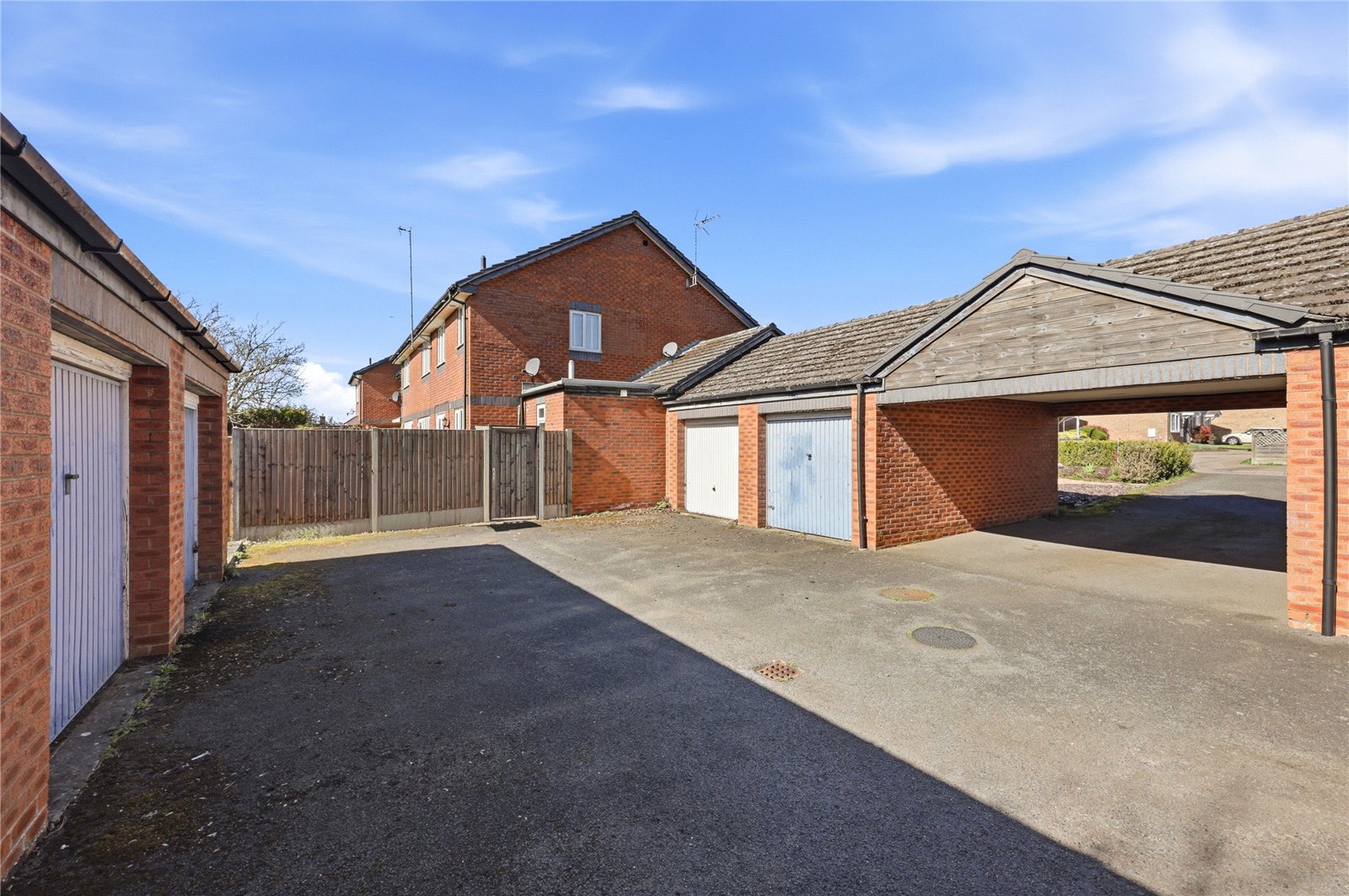- Parking for one vehicle to the front and a garage positioned in a block