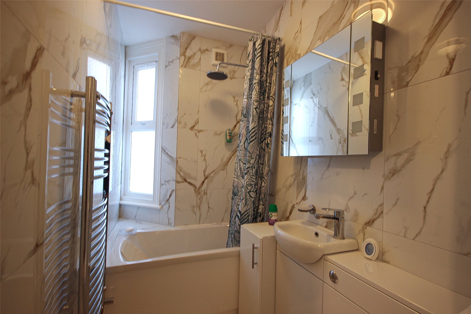 The maisonette comprises of a spacious bay fronted living room, two bedrooms, refitted family bathroom. The stylish kitchen/diner has been refitted with white high gloss units with marble effect worktops and comes with a built in oven/hob, dishwasher, fridge/freezer and space for a washing machine.