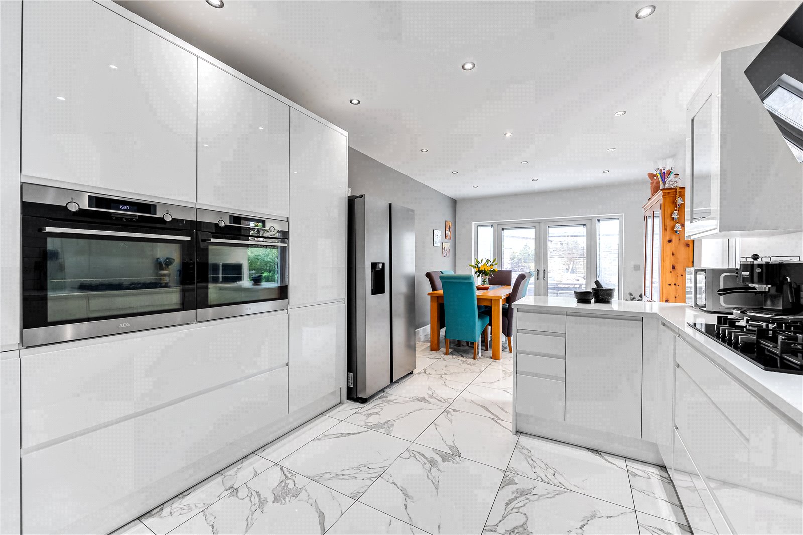 The ground floor is accessed via a generous and welcoming entrance hall with staircase rising to the first floor with storage beneath and a handy downstairs cloakroom. The 28ft lounge/diner features a multi fuel burner, oak wooden flooring and double doors that lead to the rear garden. At the rear of the property is a fantastic kitchen/diner that has been remodelled by the current owners with contemporary style white gloss units with quartz work surfaces, porcelain floor tiles and a number of integrated appliances.
