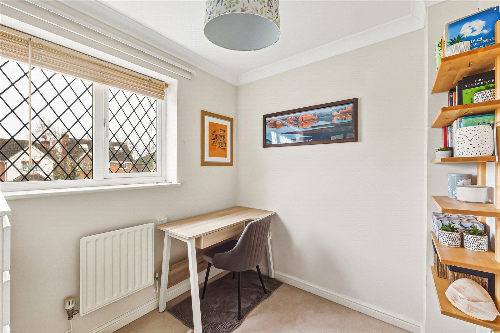 Entrance into a welcoming hallway providing access to all ground floor rooms, stairs to the first floor and storage underneath. The bright and airy kitchen/dining room is fitted with a range of wall and base level units, providing ample storage and worksurface space. There is also a handy door to the driveway. The generous lounge enjoys views over the rear garden, and boasts a feature fireplace. There is a versatile family room at the front of the property, offering an additional lounge, formal dining area or work from home options. The ground floor is completed by the convenient ground floor WC. On the first floor, the generous master bedroom sits at the back of the property, and features a modern en-suite shower room. There is an additional roomy double room to the front, plus two further bedrooms and a family bathroom. Outside, there is a small front garden with mature plants providing privacy. The good size rear garden offers ample lawn space, and benefits from seating areas with mature plants, plus a storage shed with power supply. The driveway runs at the side of the property to the single garage. The street also boasts well maintained grassed areas, pathways and multiple parking bays ideal for visitors.