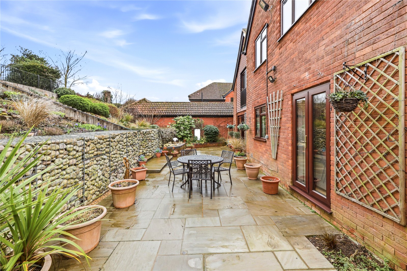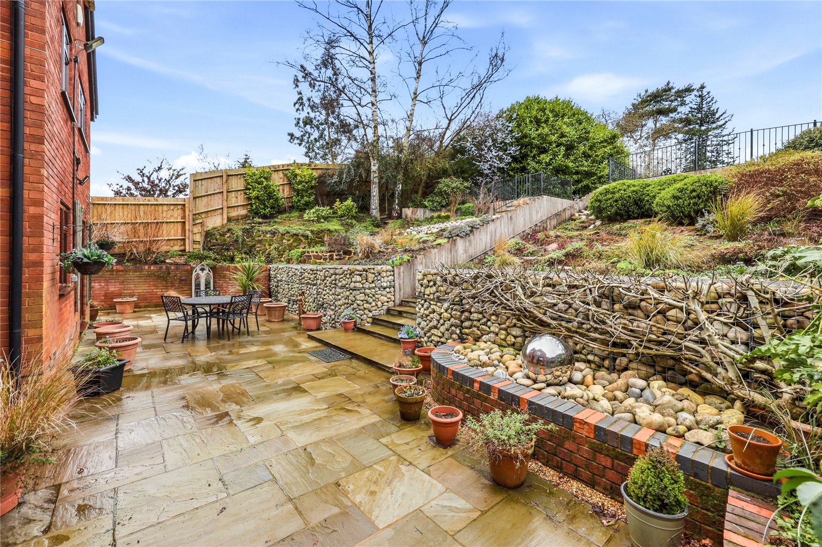 - Attractive landscaped rear garden with patio and raised lawn