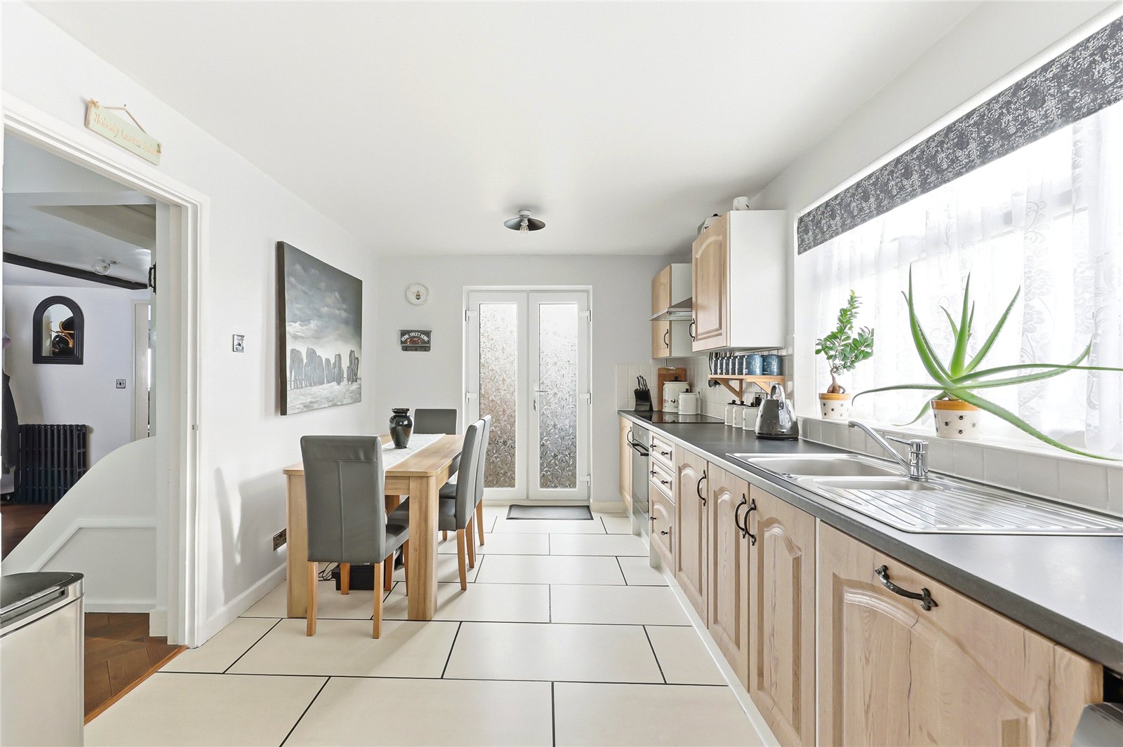 Approach to the property is via twin black wrought iron gates opening onto an extensive hard-standing driveway providing off-road parking for several vehicles, with a mature lawn set to one side. Once inside, you are immediately greeted by the entrance hall, which has a staircase rising to the first floor accommodation and, directly ahead, access into the kitchen/diner. This has been fitted with a comprehensive range of floor and wall mounted units with darker contrasting work surfaces over, whilst several integrated appliances have been seamlessly incorporated. Space is also afforded for additional freestanding goods, as well as a table and chairs, creating a real family and sociable environment. French doors open directly into the rear garden.