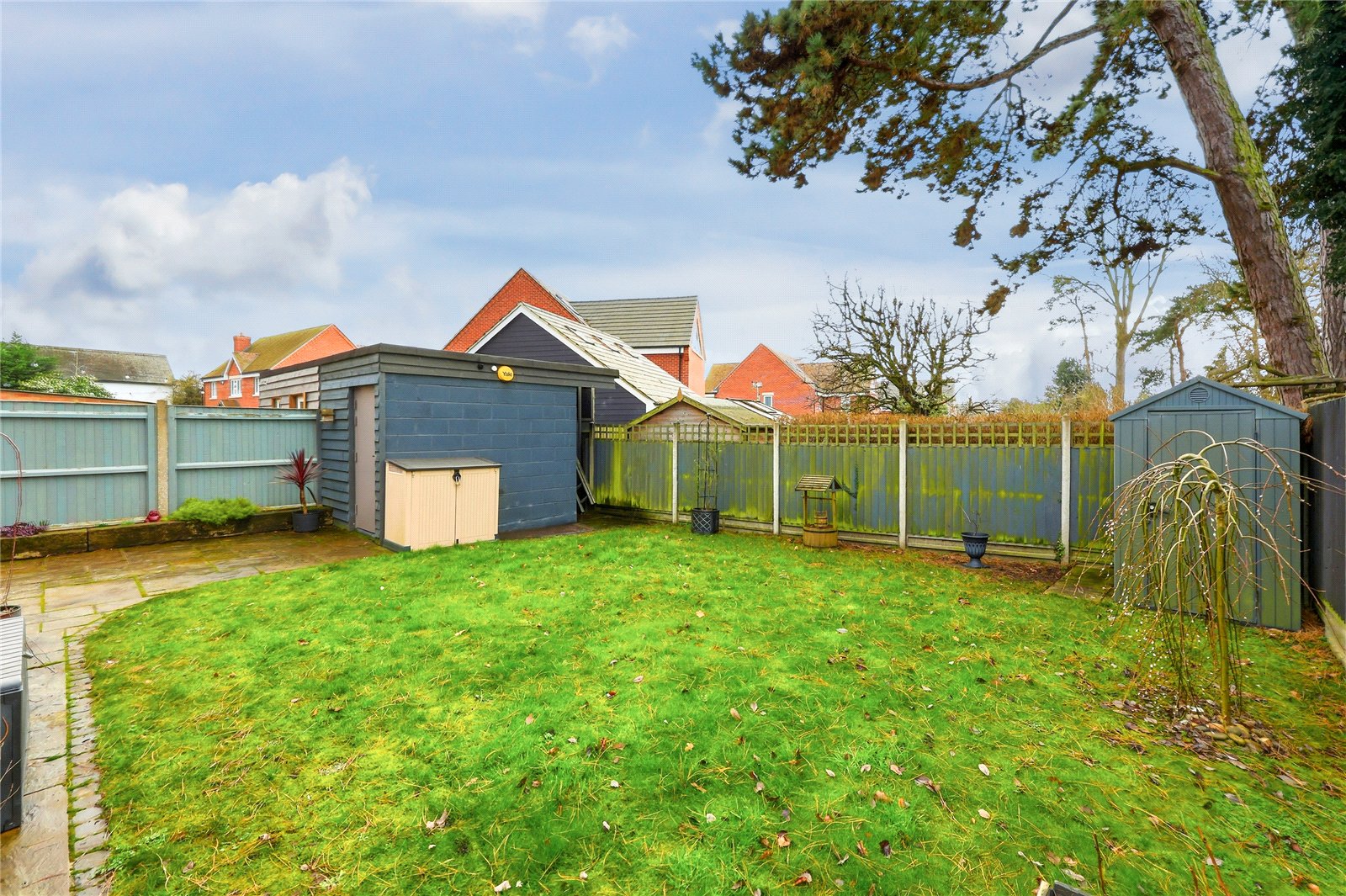 Externally, the rear garden has been thoughtfully designed and executed. A paved patio area sits immediately outside the property, ideal for relaxing or entertaining, beyond which the garden is laid predominantly to lawn. An outbuilding provides useful storage capacity, and the boundaries are enclosed by timber fencing with gated side access.