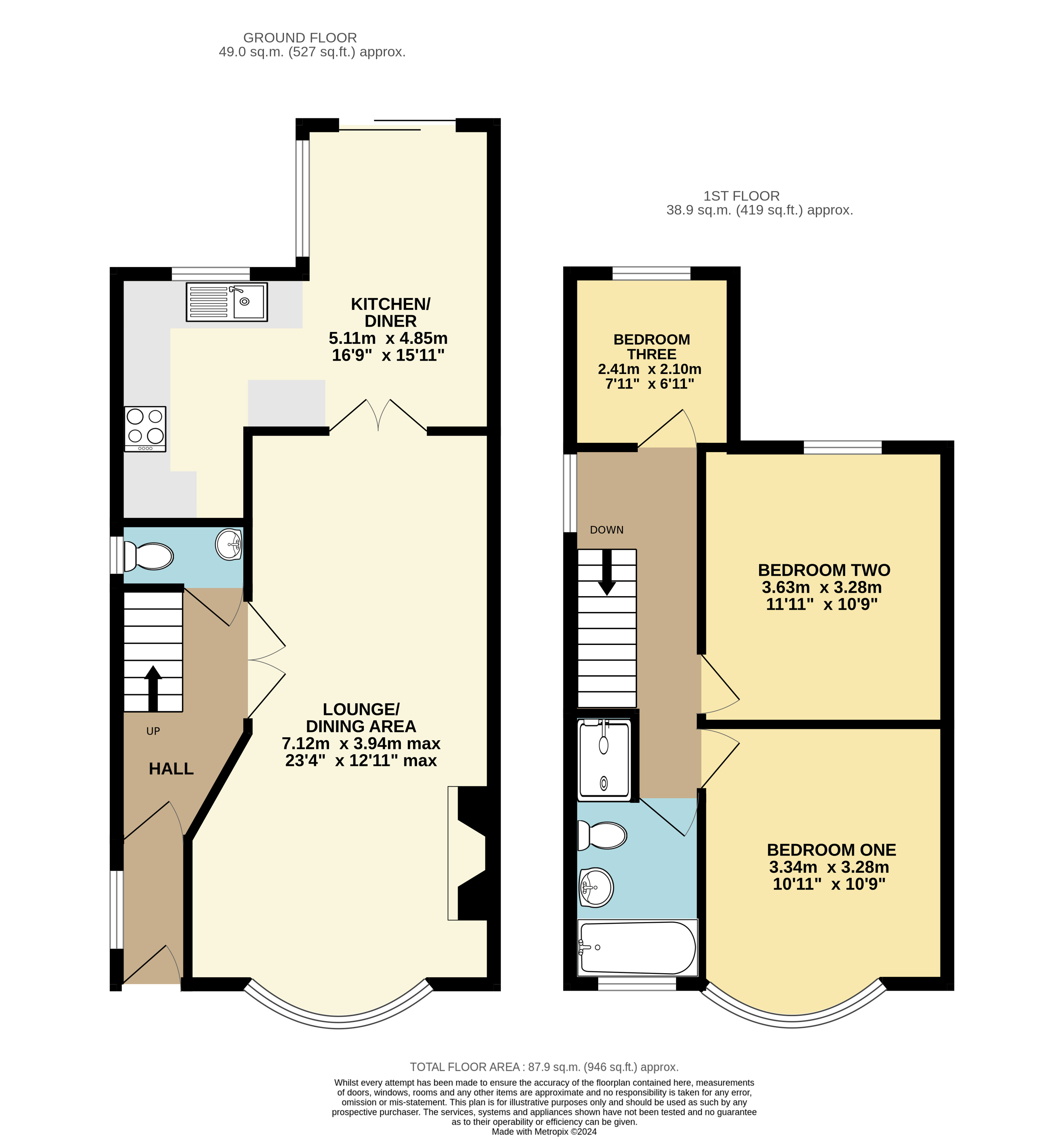 Upstairs is where you find three well-proportioned bedrooms with the larger benefitting from a bay window like the lounge/dining area. The family bathroom is a four piece suite and is also located on the first floor.