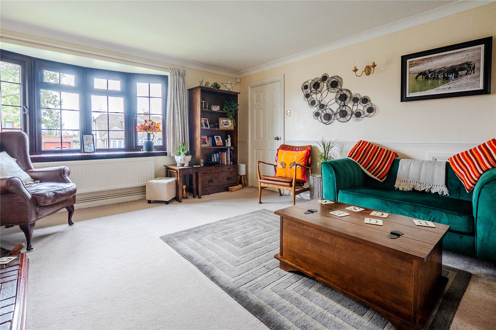 Outside, the beautifully landscaped south facing garden is both private and secluded, featuring multiple patio areas, a lawn, and direct access to the garage. It’s an ideal space for summer entertaining with family and friends. To the front and side, the garden is mainly laid to lawn with mature shrubs and a pathway leading to the entrance.