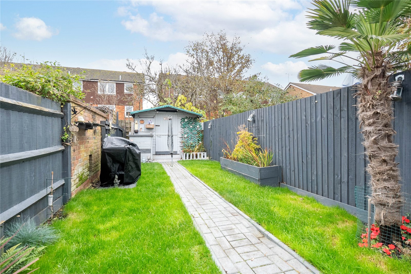 As mentioned, the rear garden has been landscaped and really comes into its own during the summer. There is also a workshop at the end of the garden which benefits from power. There is gated, shared access that runs through the garden to allow for neighbours access. The front garden is enclosed and there is gated access to the path that leads to the front door.