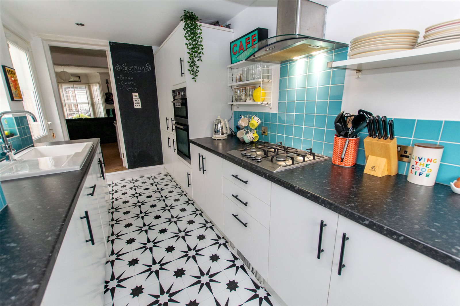 An entrance hall welcomes you into the house and leads into the 21' lounge/dining area. This benefits from a bay window to the front as well as another window to the rear looking down the garden. The kitchen is situated at the rear of the property and has been stylishly refitted, consisting of a range of integral appliances.