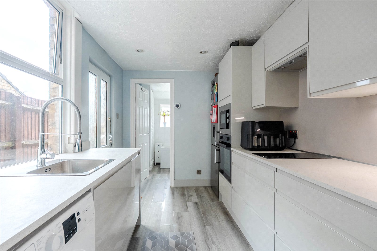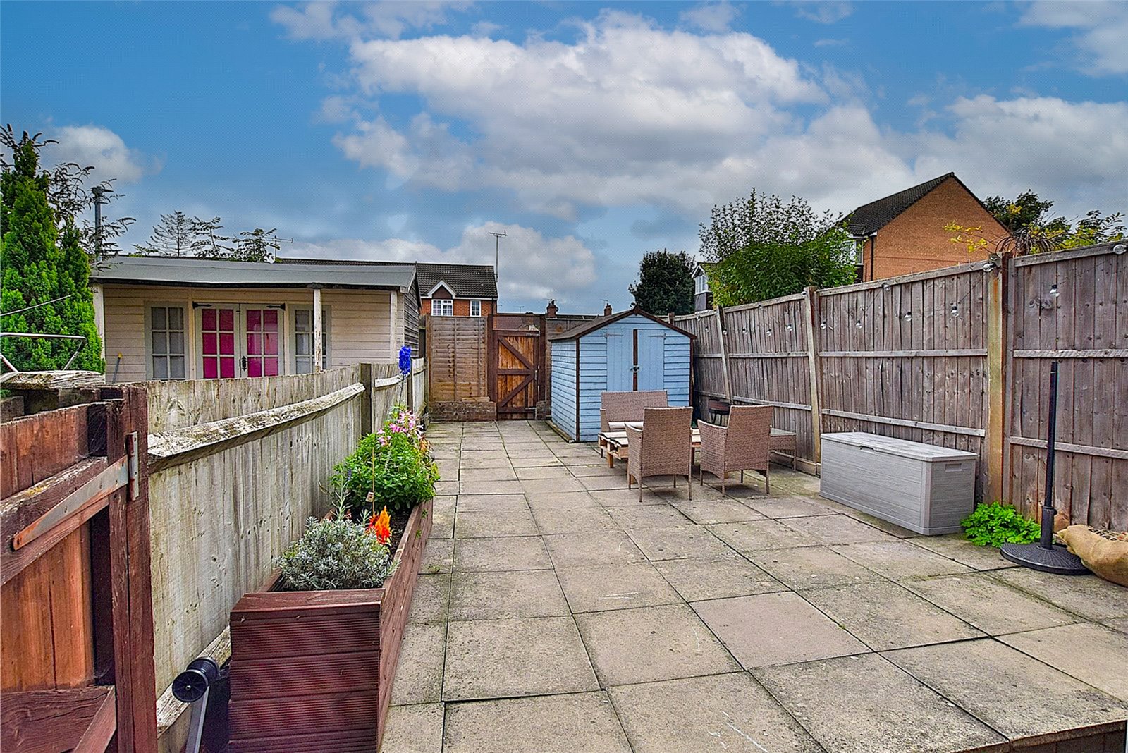 The rear garden is a private area which has gated access leading out to Falcon Close where additional on street parking can be found.