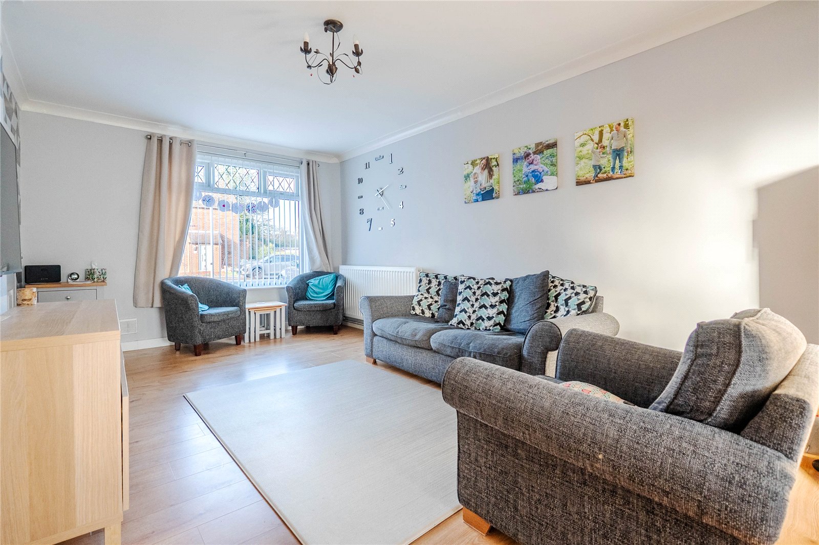 An entrance porch takes you into the property before you then walk into the spacious hallway. To your left hand side is a door that leads into the bright and airy living room. This opens up to a dining space at the back which overlooks the rear garden with a door providing access. The kitchen also looks over the garden and is separate, with the added benefit of a large built in storage cupboard. A handy utility room provides an area to have the white goods and provides access to the cloakroom. There is also an additional storage cupboard.