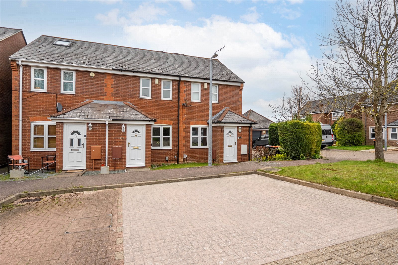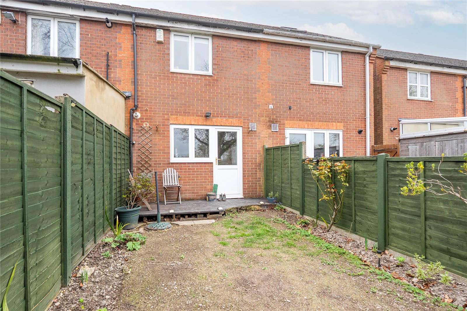 The rear garden is a private and quiet space offering a place to sit in the summer and enjoy the sun. The front offers two allocated parking spaces belonging to the property which we have highlighted white in the photo for clarification.