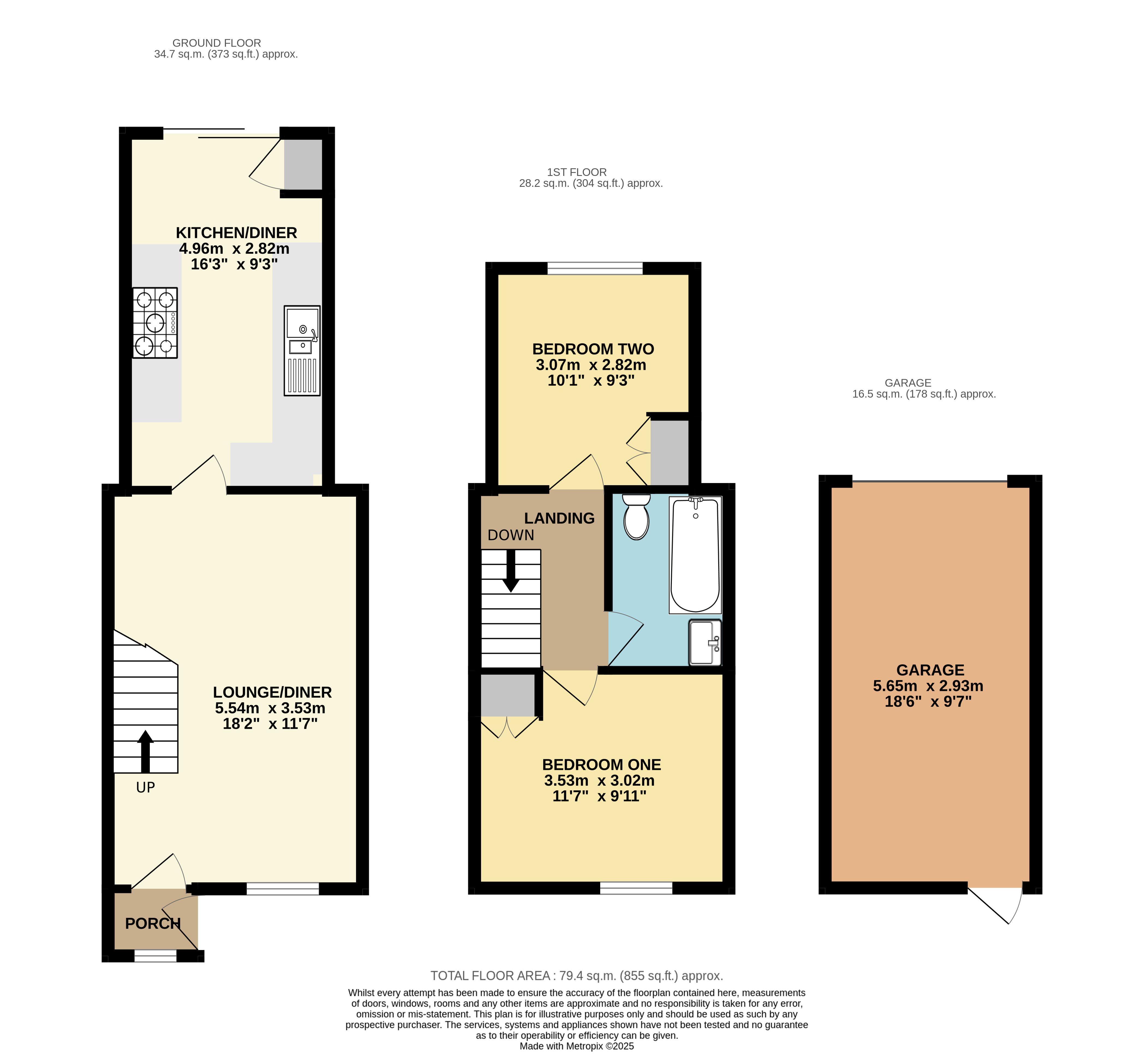 An entrance porch brings you into property before you then come into the main living accommodation. This is a lounge/dining area which stretches in excess of 18' and is a very versatile space. The kitchen/breakfast room to the rear is also a generous size. There is plenty of work top space and storage as well as integrated appliances such as a tumble dryer, washing machine and dishwasher. There is also a storage cupboard which houses the combination boiler.