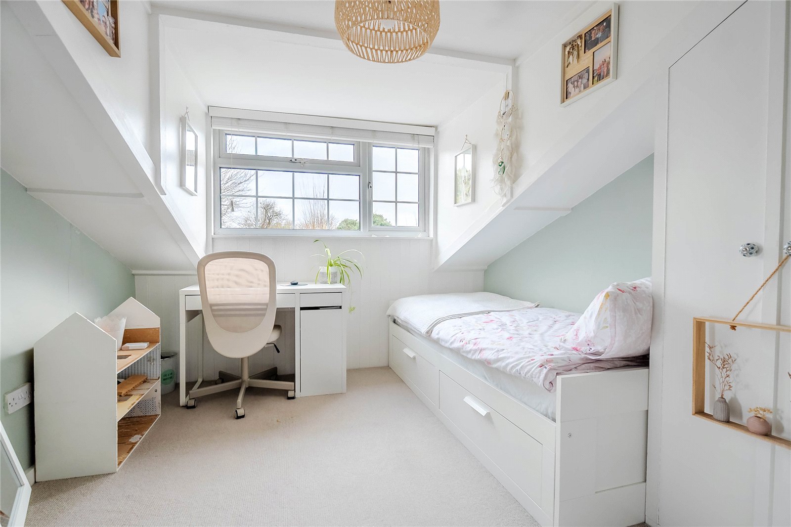 The loft has been fully boarded, carpeted and plastered to create a brilliant storage space. There is also a Velux window and there is further storage in the eaves.