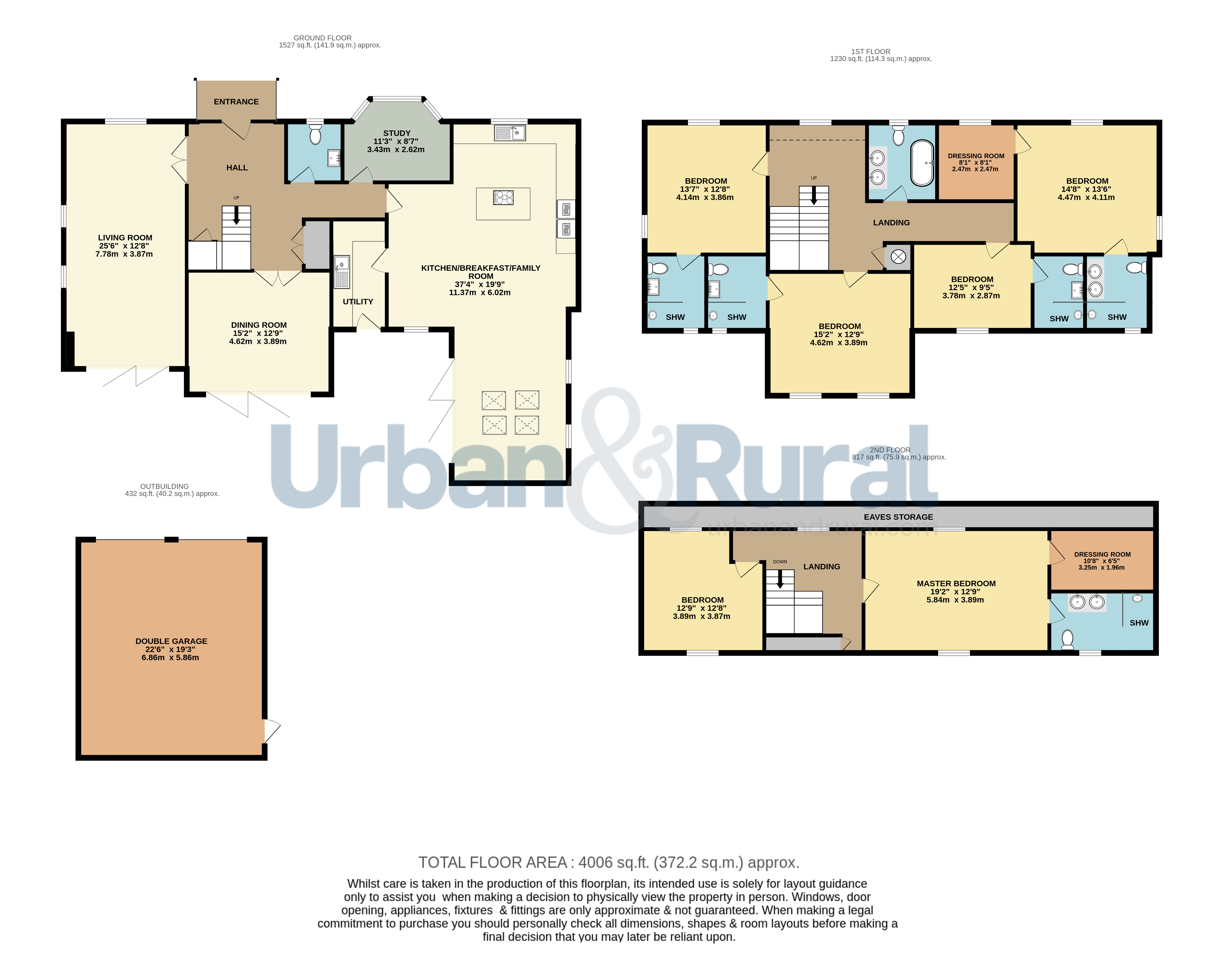 - Four bedrooms on the first floor, all with en-suites & one including a dressing room as well as a family bathroom