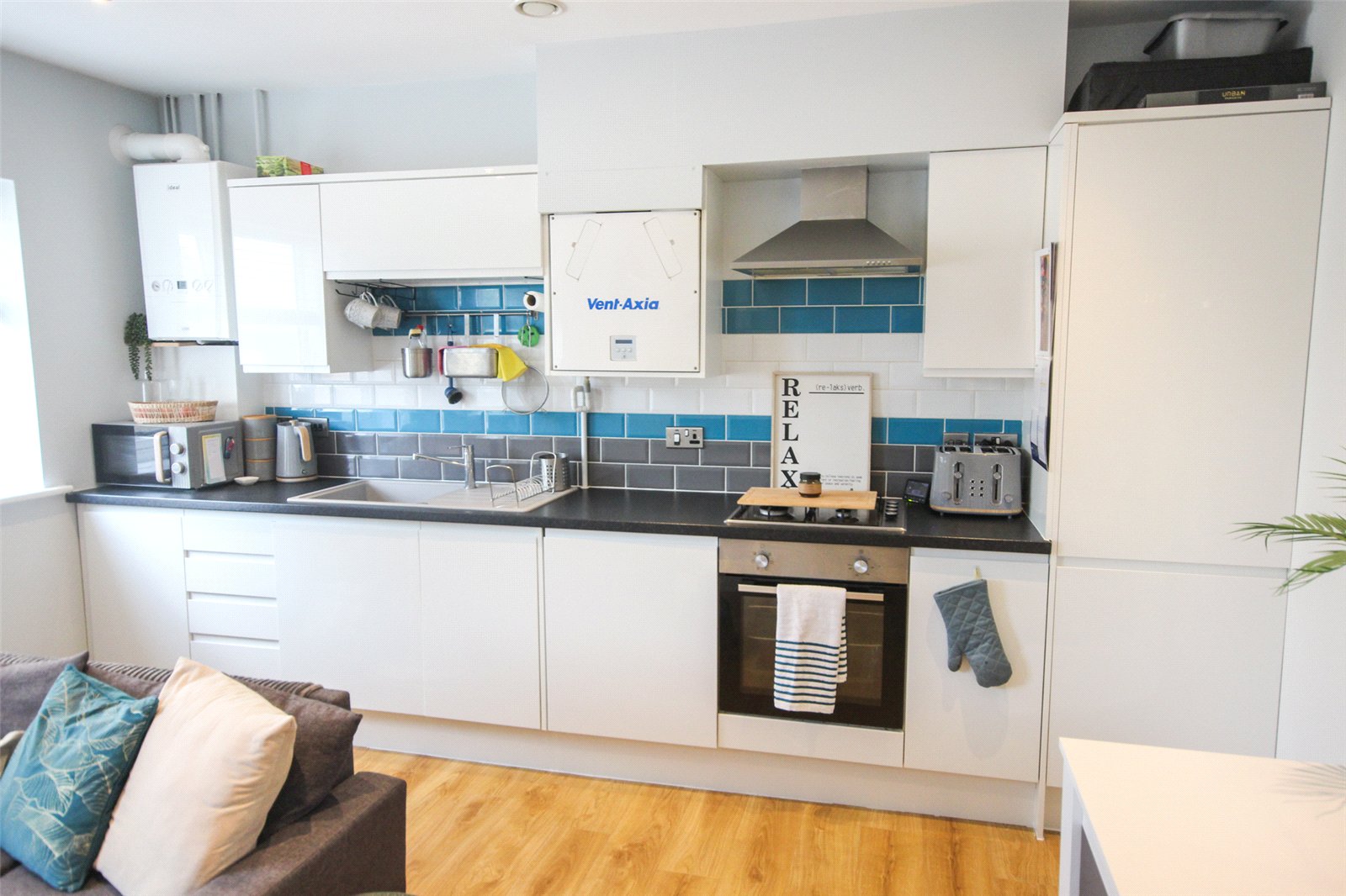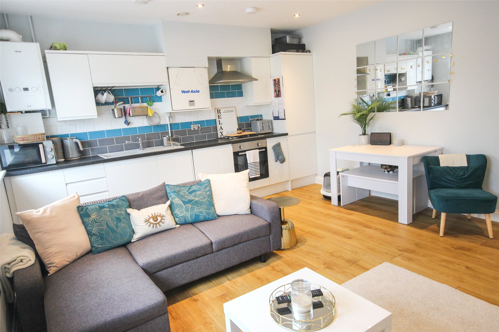 - Impressive open plan kitchen/living room measuring approximately 16’3ft by 14’6ft