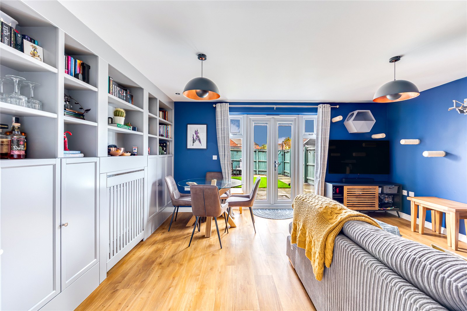 - Good sized living room with bespoke cabinetry