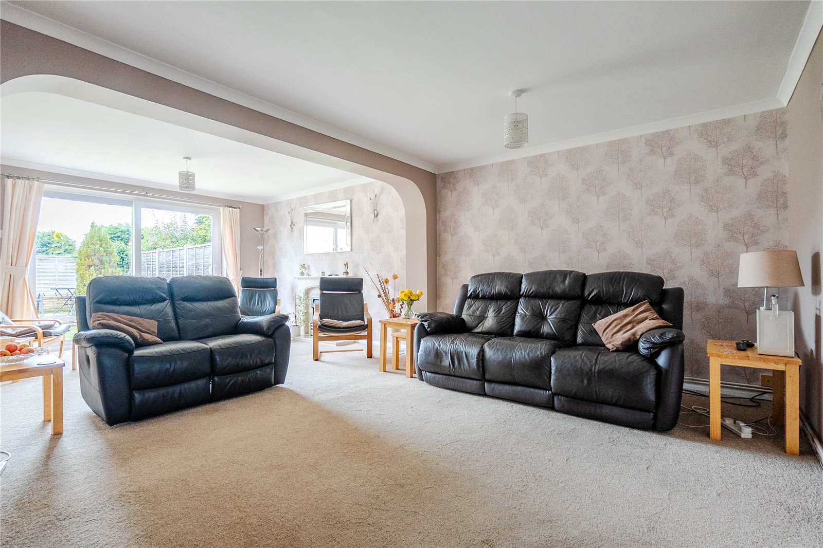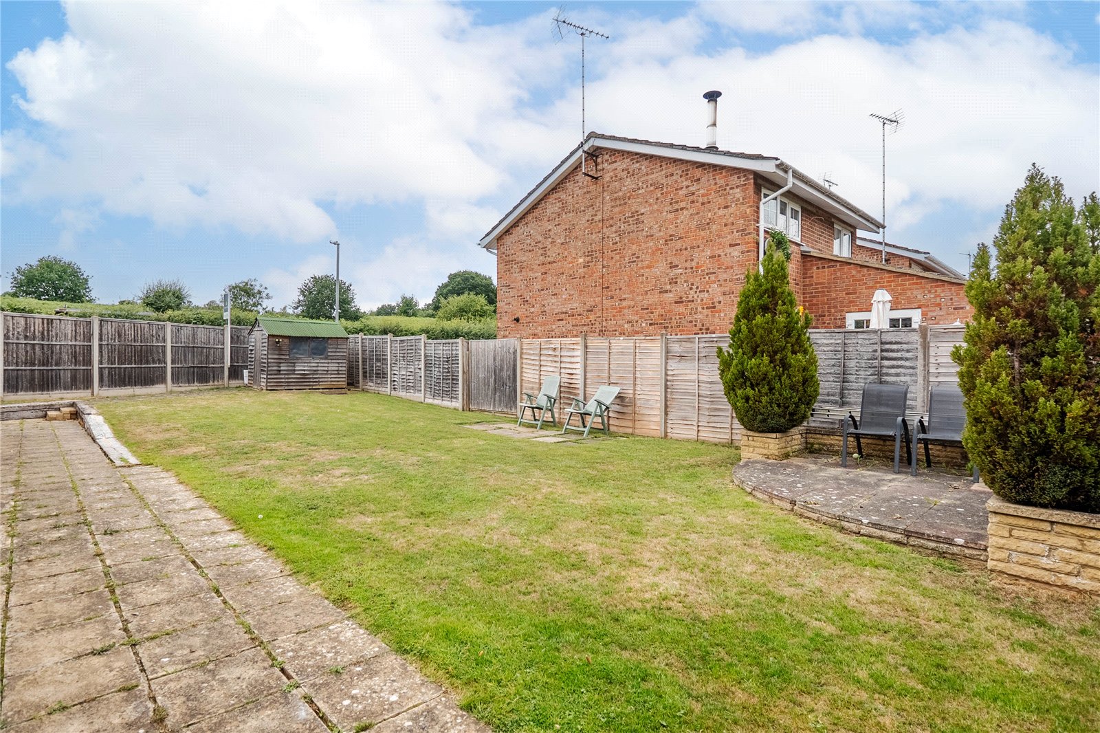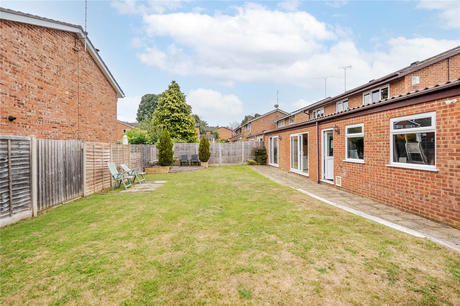As mentioned, the plot is an excellent size with a spacious rear garden spanning the entire width. This is an amazing space for kids to run around in as well as hosting family and friends in the summer. The front is predominantly driveway parking for several vehicles leading round the side of the house up to the garage.