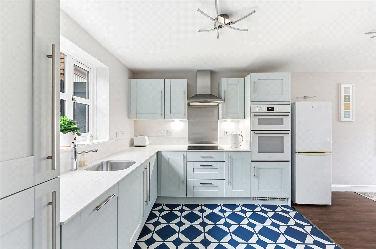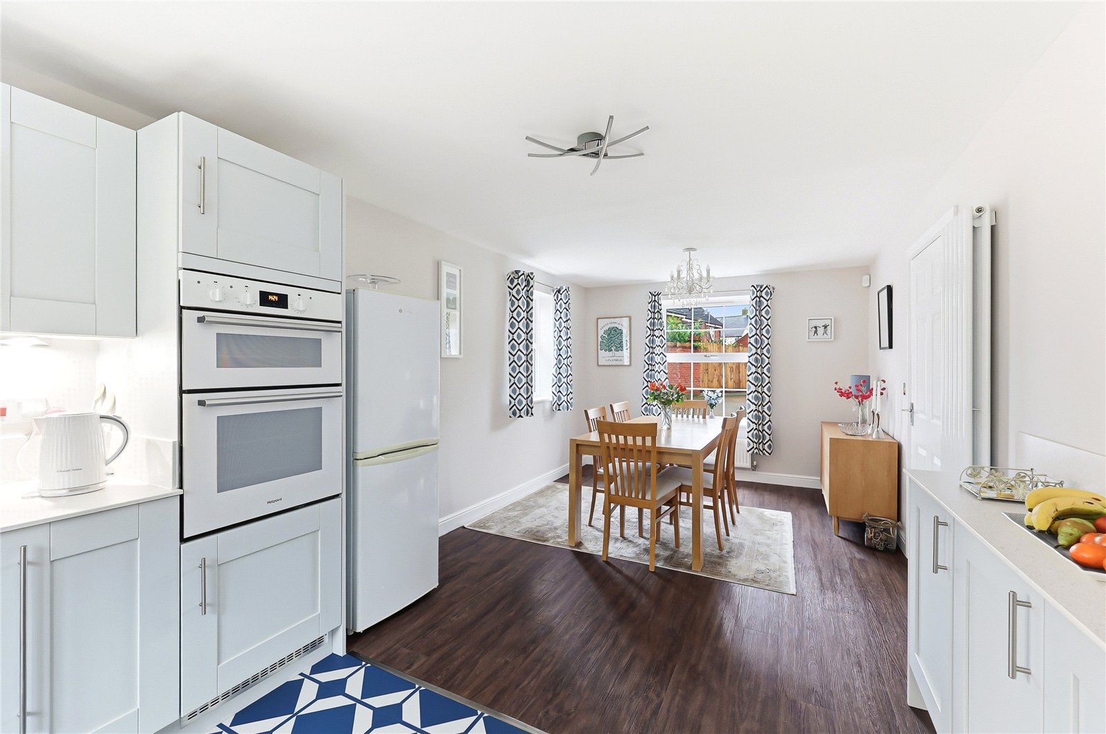 - Contemporary dual aspect kitchen/diner with various integrated appliances & separate utility room