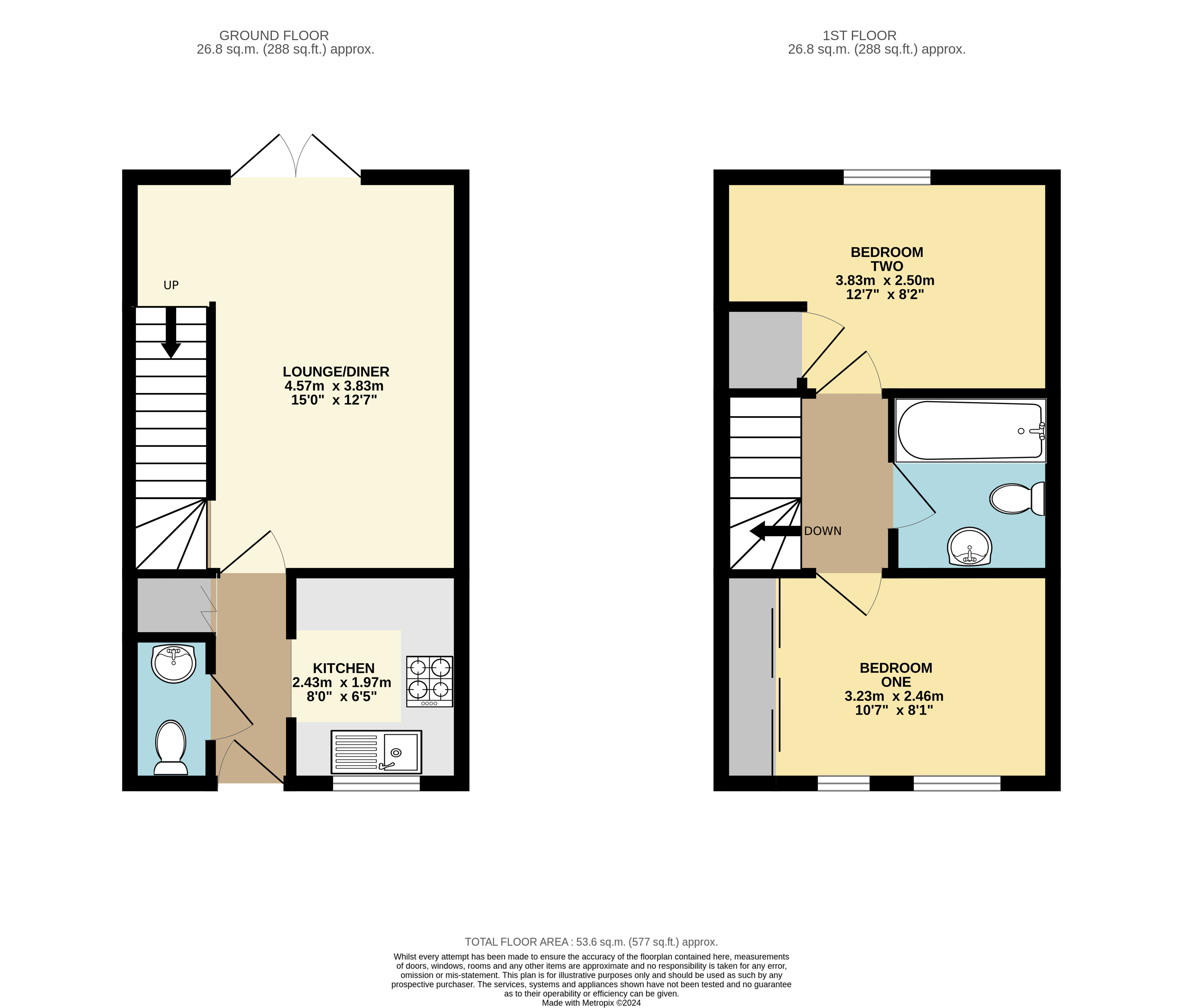 The first floor is where you find two double bedrooms and either could be used as the main. A family bathroom is located in between off the landing.