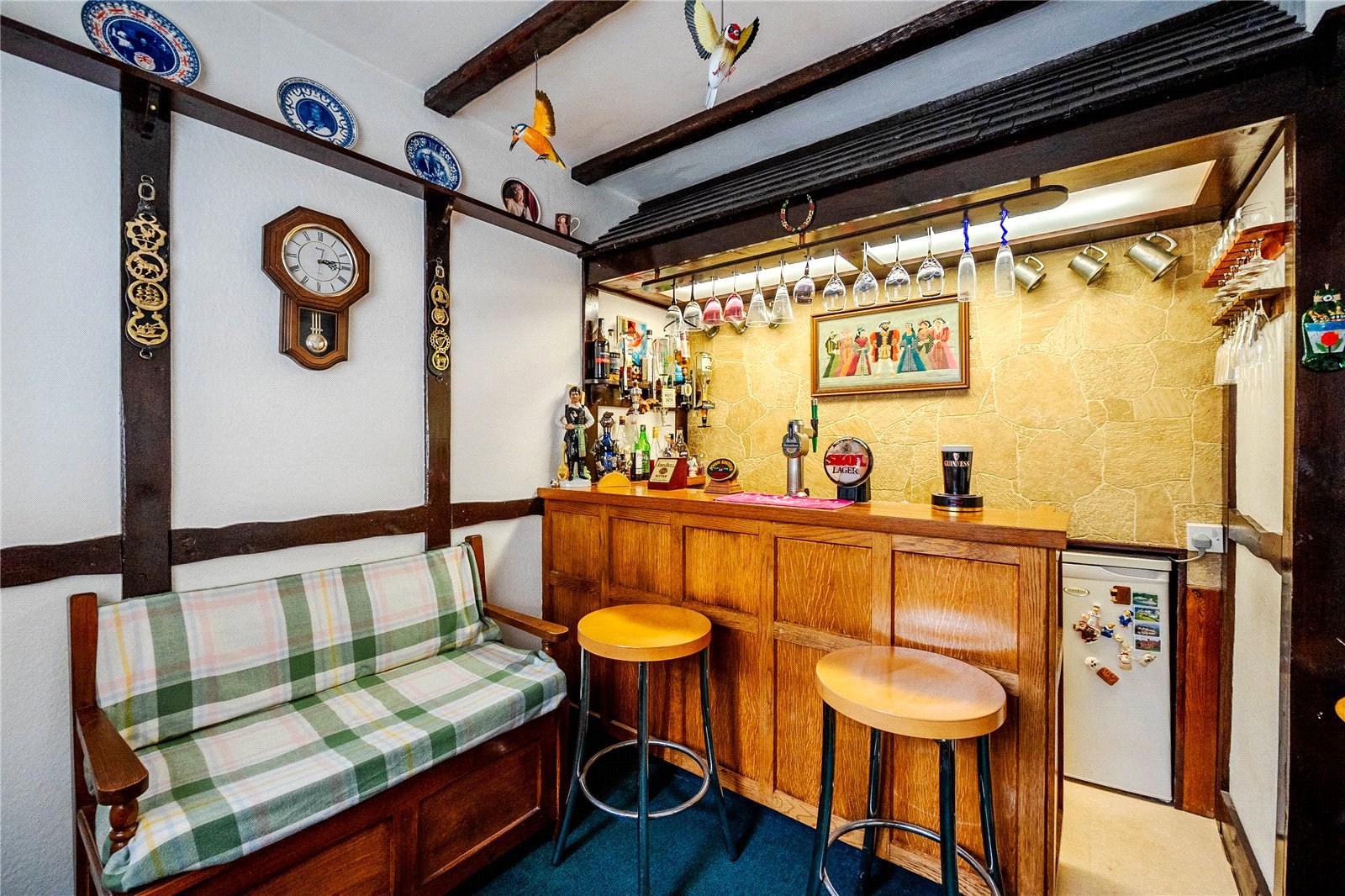 The lobby has a door which leads into the 19' sun room/garden room that overlooks the generous rear garden and it can also be accessed via the main living room. This is a cosy space and the ideal place to relax in the evenings. It has a door which leads through to what is currently being used as a home bar but could be adapted to make a study if needed.