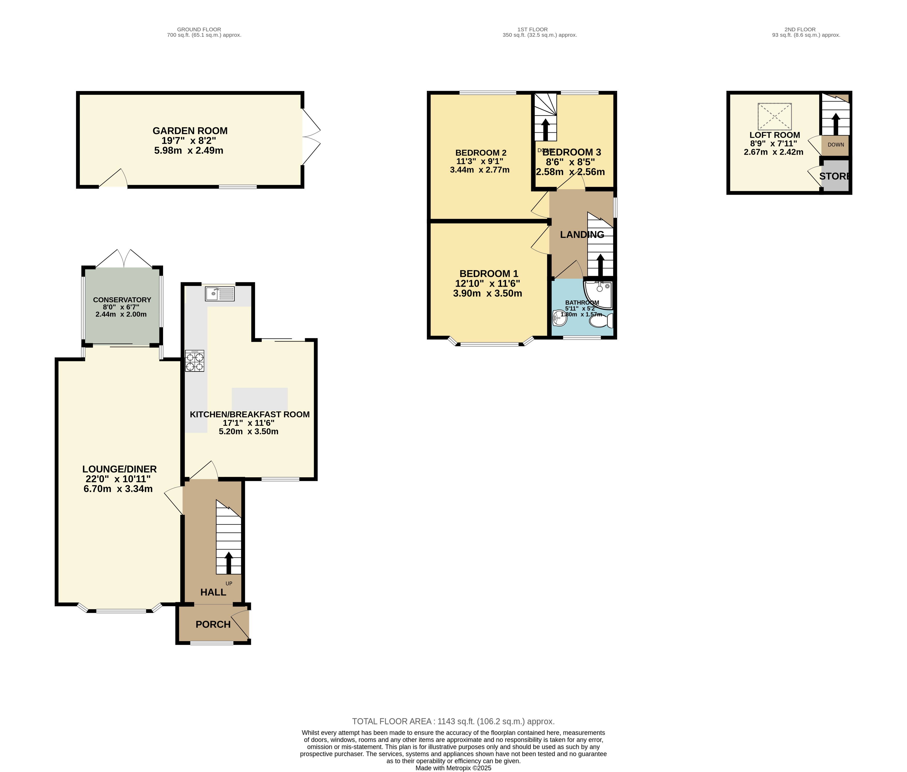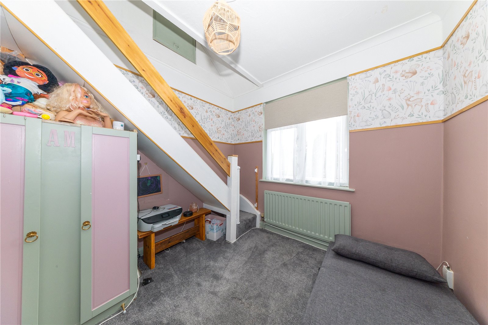 The first floor boasts a family bathroom and 3 spacious bedrooms, one of which has access to a loft room. Externally there is a garden laid to lawn leading to a garden room with electric power points and lighting. The property also has planning permission for a double storey side extension.
