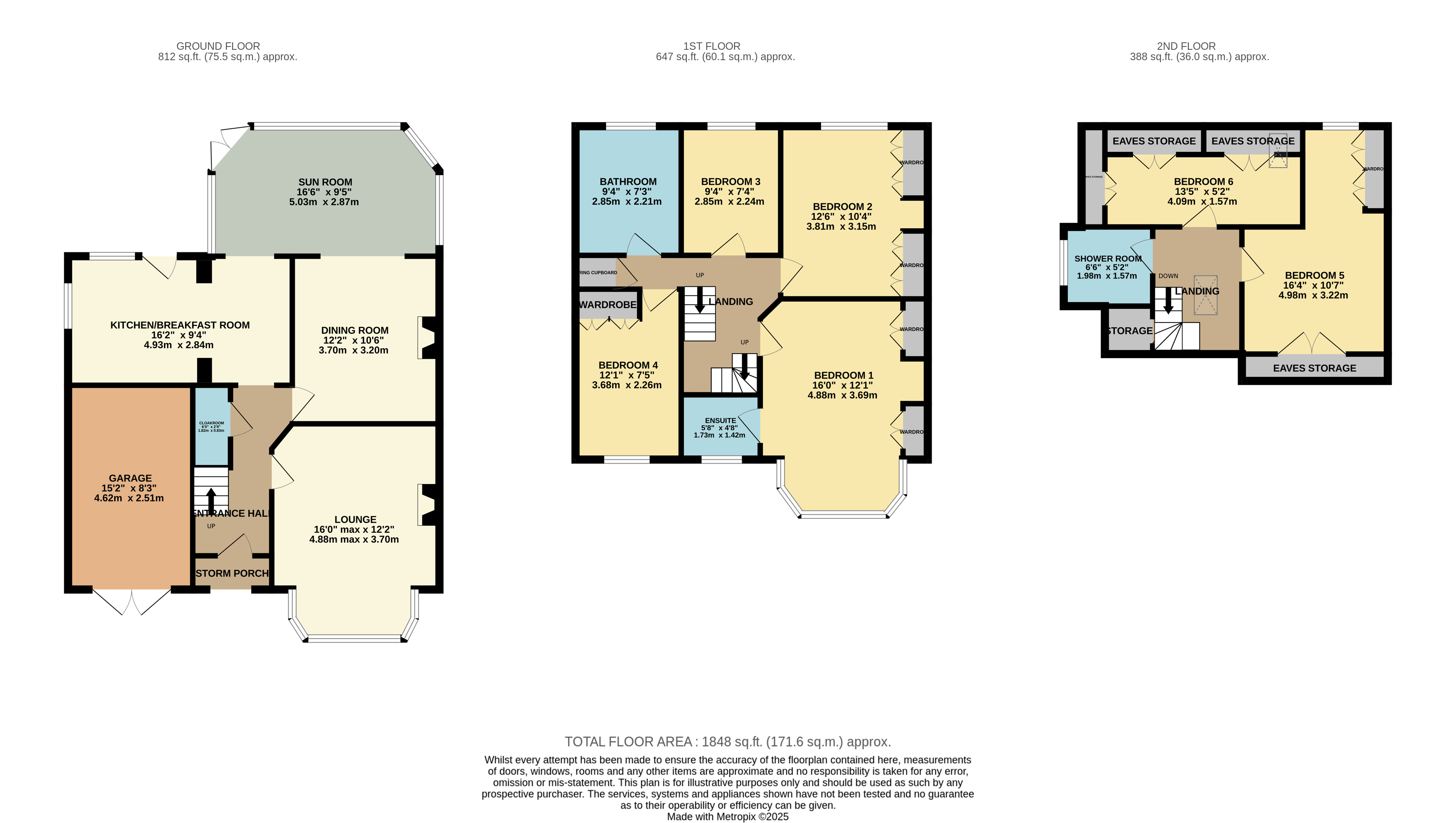 The top level provides access to the eaves for extra storage, alongside two additional bedrooms, one with fitted wardrobes and ample storage in both. A further three-piece shower room completes this floor.