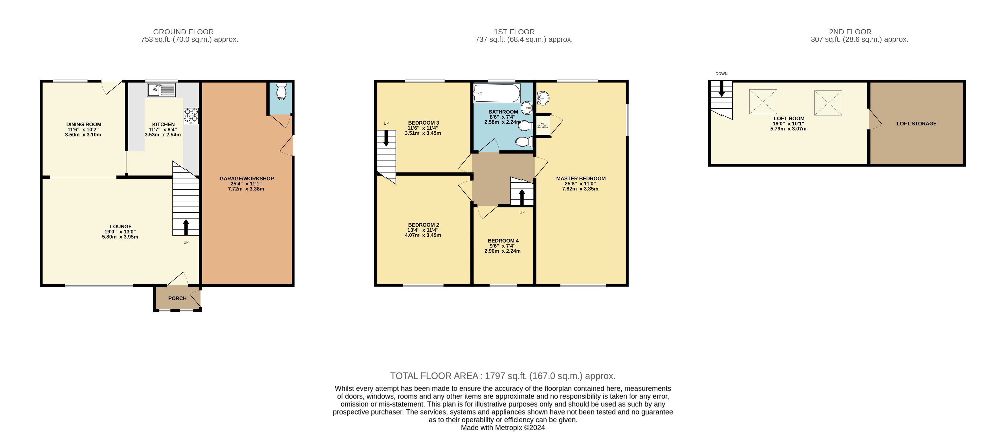Upstairs there is a 25ft master bedroom, 3 further spacious bedrooms; one of which leads to a 19ft loft room. There is also a family bathroom with a 4 piece suite.