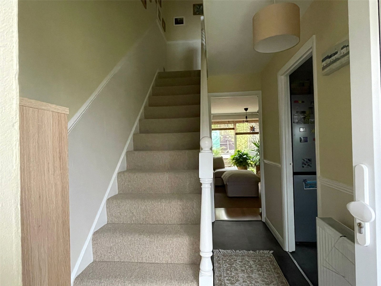 The ground floor comprises a kitchen, useful storage space beneath the stairs, and a bright and spacious living room overlooking the rear garden.