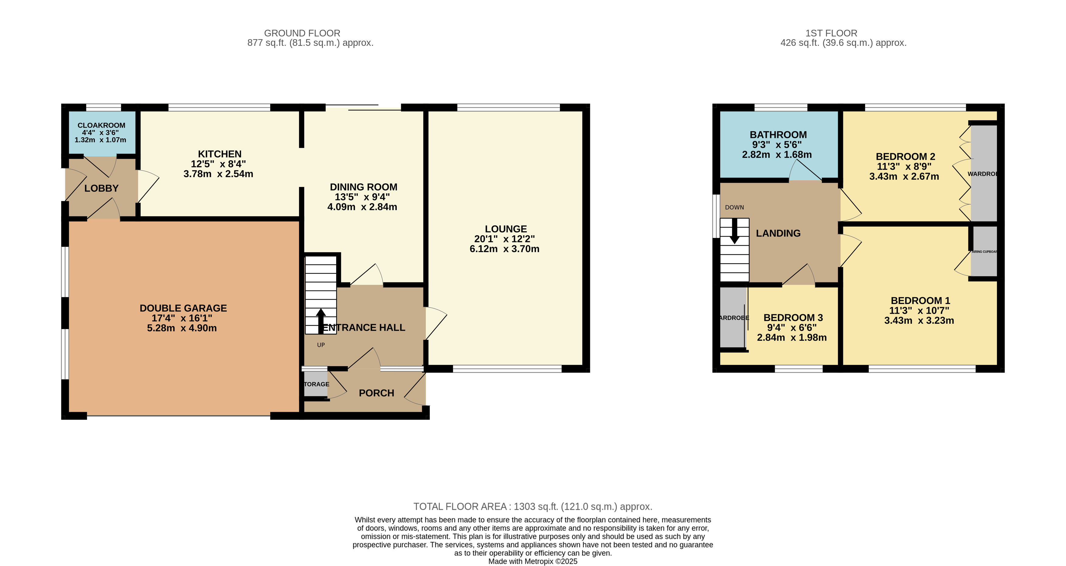 The first floor comprises a bright landing with loft access (fully boarded, with power, lighting, and pull-down ladder), a generous principal bedroom with an airing cupboard, a second double bedroom complete with bespoke fitted wardrobes, and a third single bedroom with built-in wardrobe—ideal for use as a nursery or home office. A sleek, three-piece bathroom suite completes the upper level.