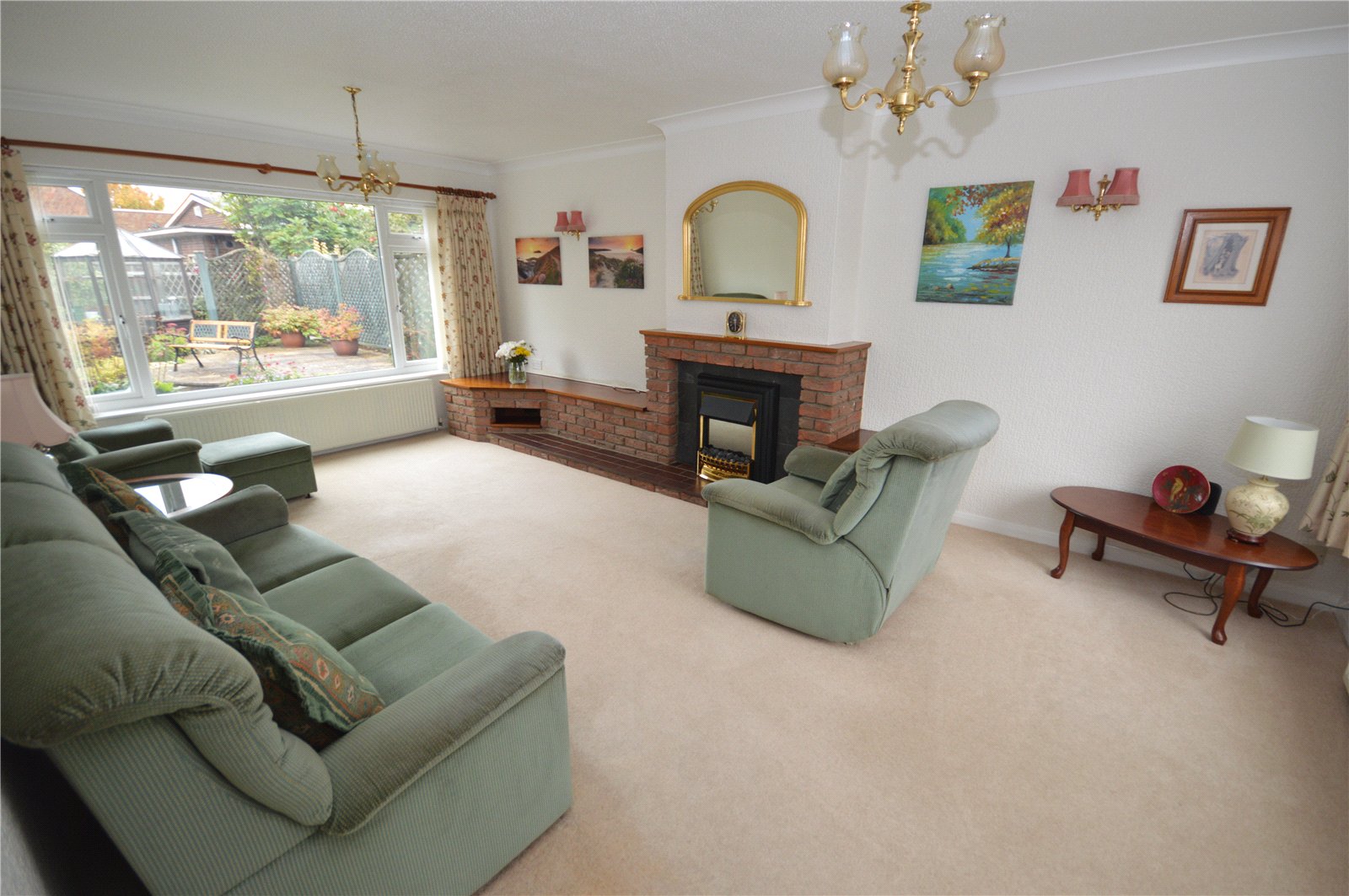 Features include a welcoming entrance porch with custom-built storage, a spacious entrance hall with stairs to the first floor, a dual-aspect lounge boasting a feature electric fireplace with an elegant brick surround, and a separate formal dining room with French doors opening onto the rear garden. The kitchen is well-appointed with an integrated oven and hob, along with ample space for further appliances. To the rear, a practical lobby offers direct garden access and leads to a stylish cloakroom/WC.