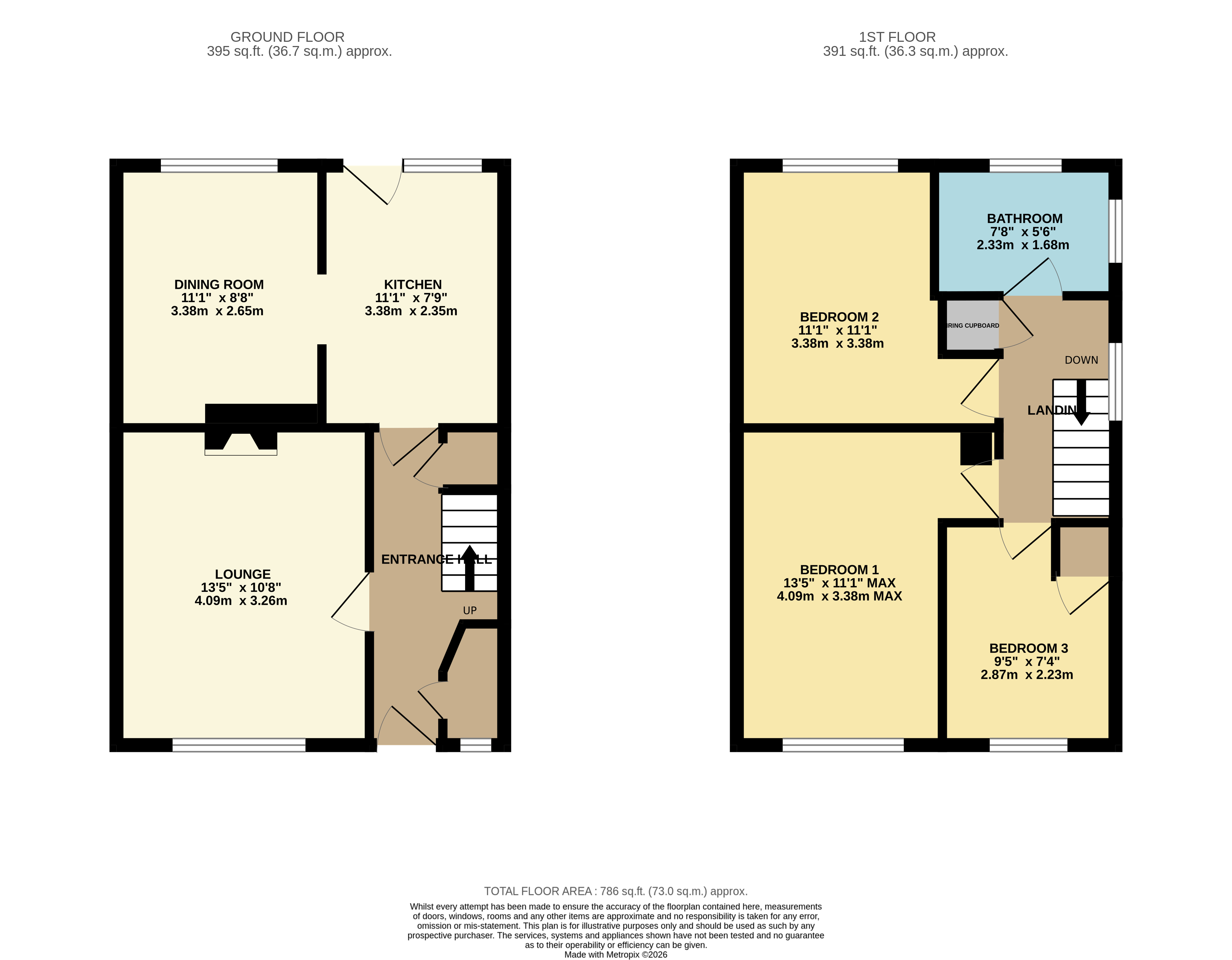 First floor consists of landing with loft access (containing power/light and pull down ladder), main double bedroom, second double bedroom, third single bedroom with built in storage, three piece bathroom suite with separate power shower and heater.