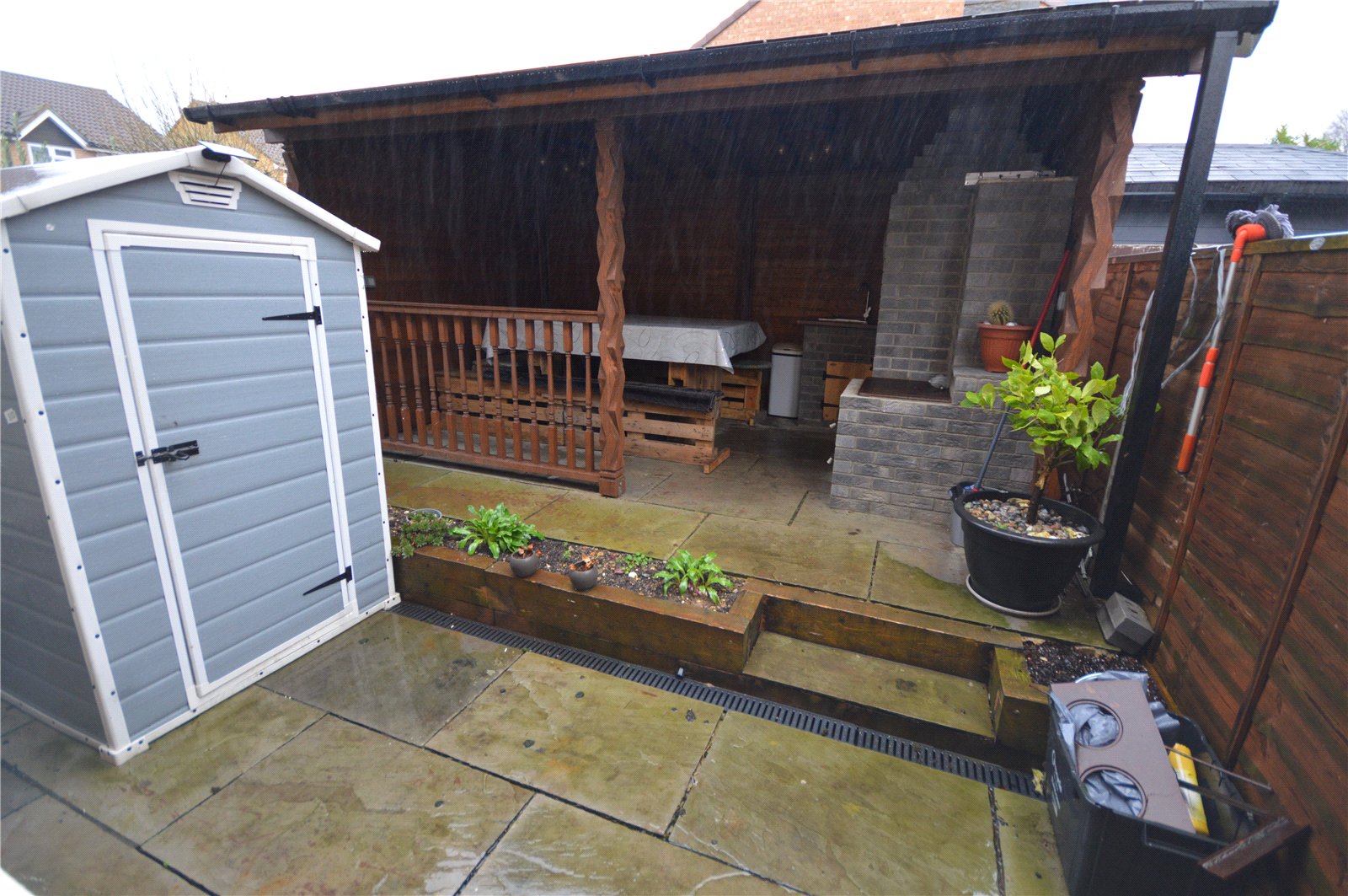 Outside has a laid to lawn front garden, built in storage housing a gas meter, landscaped rear garden with an enclosed seating area with a brick built barbeque, water connection and electric.