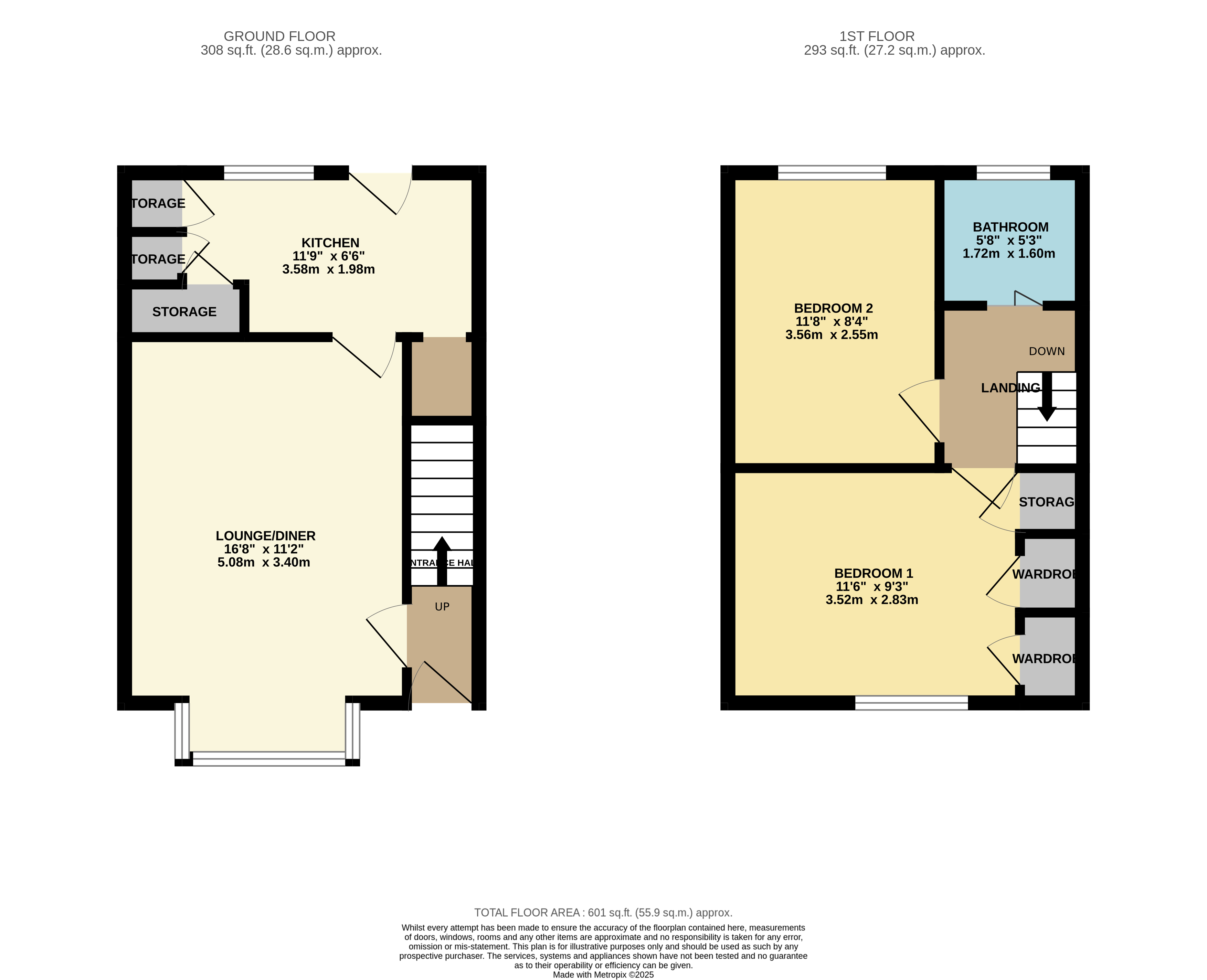 First floor consists of landing with loft access, main double bedroom with built in wardrobes and a storage cupboard, second double bedroom and a three piece bathroom.