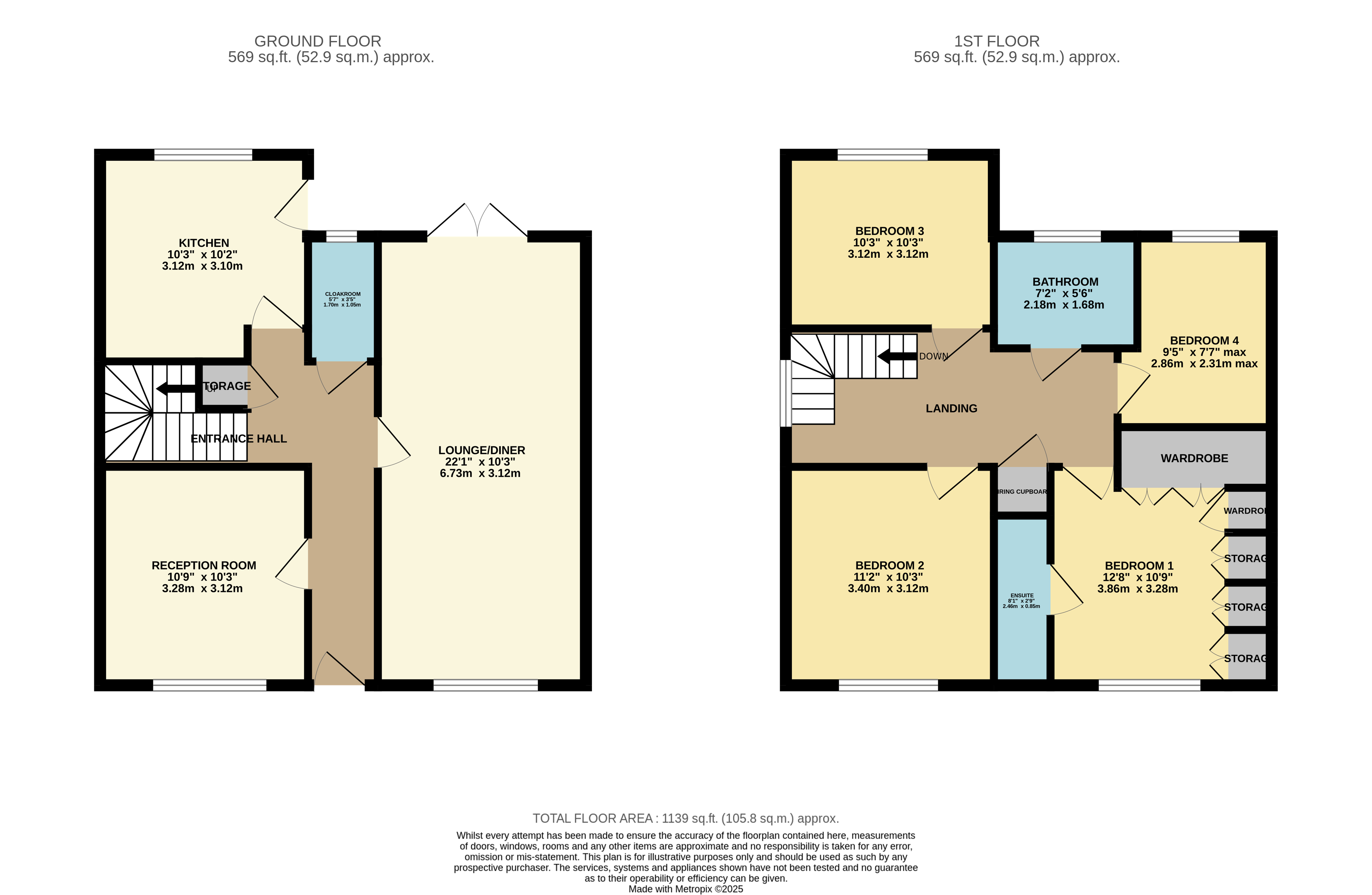 First floor consists of landing with loft access (with power and light) airing cupboard housing a water tank. Main double bedroom with fitted wardrobes and a three piece en-suite, second and third double bedrooms (both with fitted wardrobes, fourth single bedroom and a three piece bathroom suite.