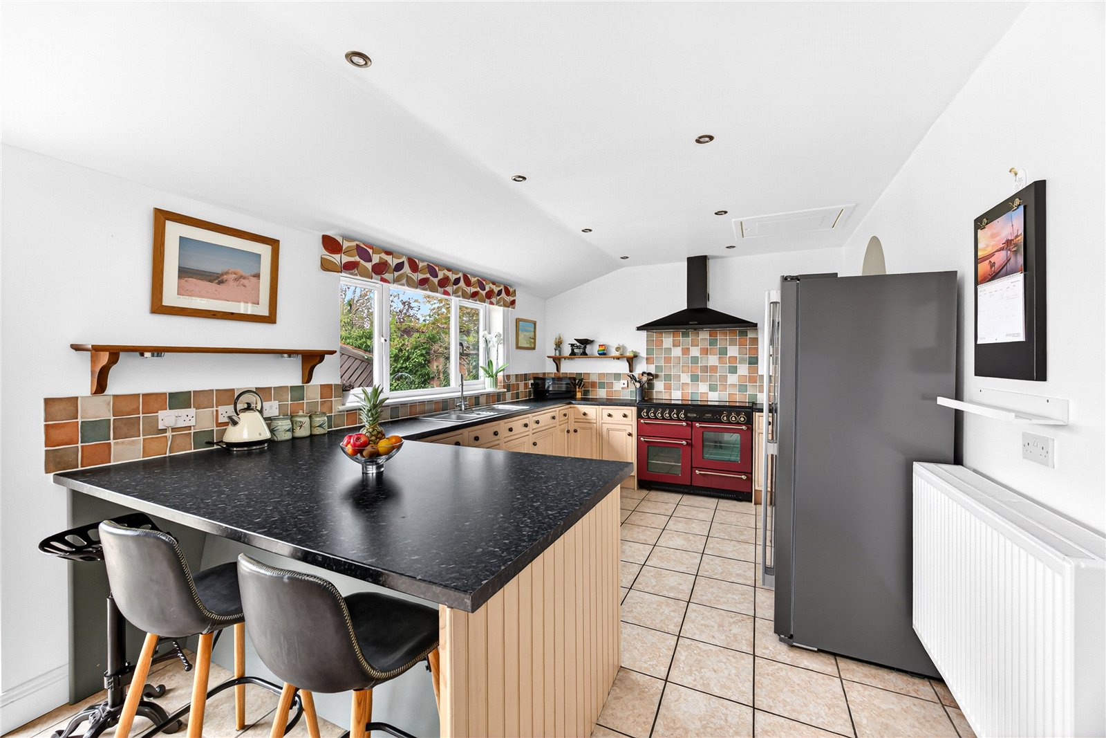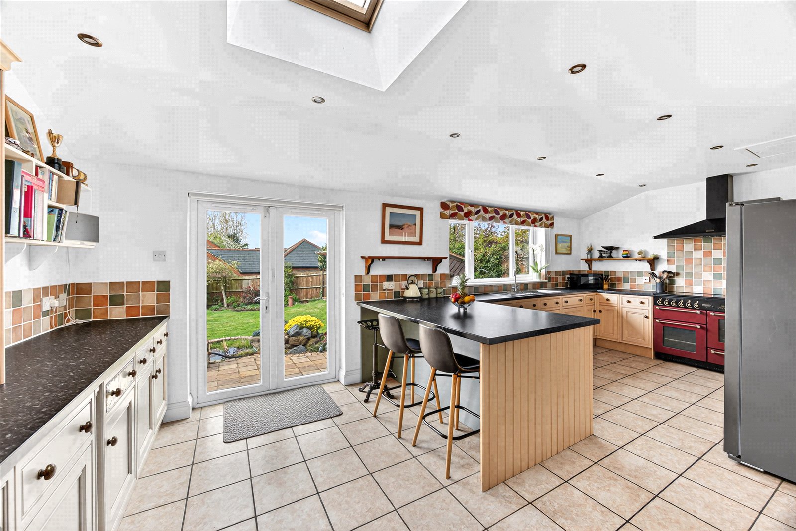 - 22ft kitchen/breakfast with shaped ceiling and views across the garden