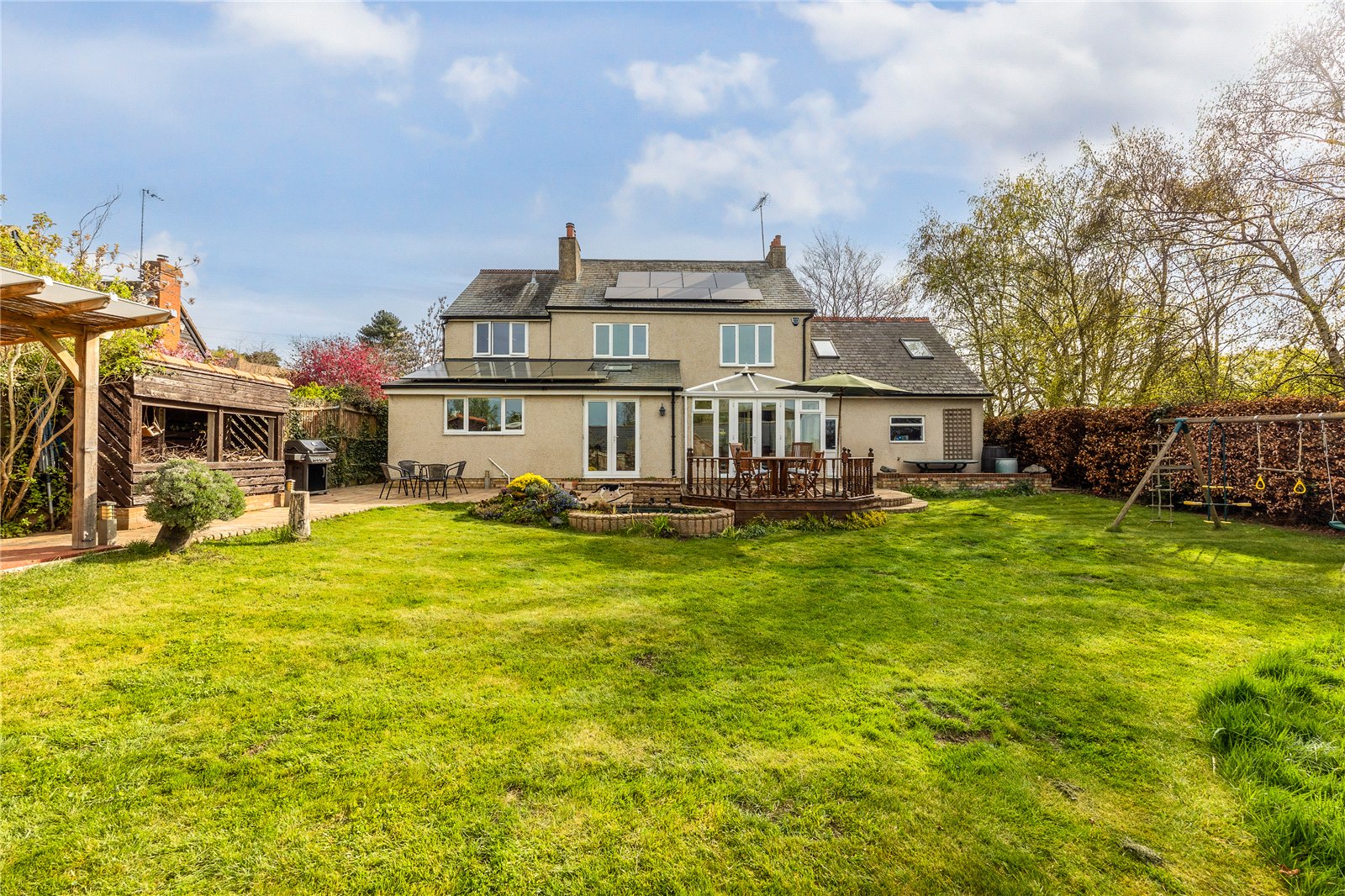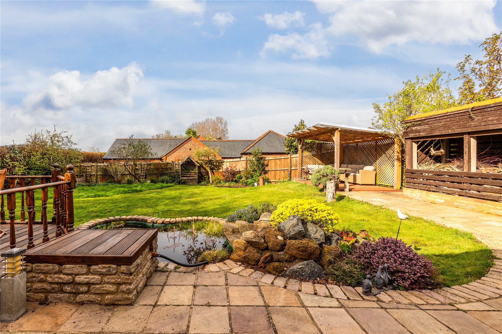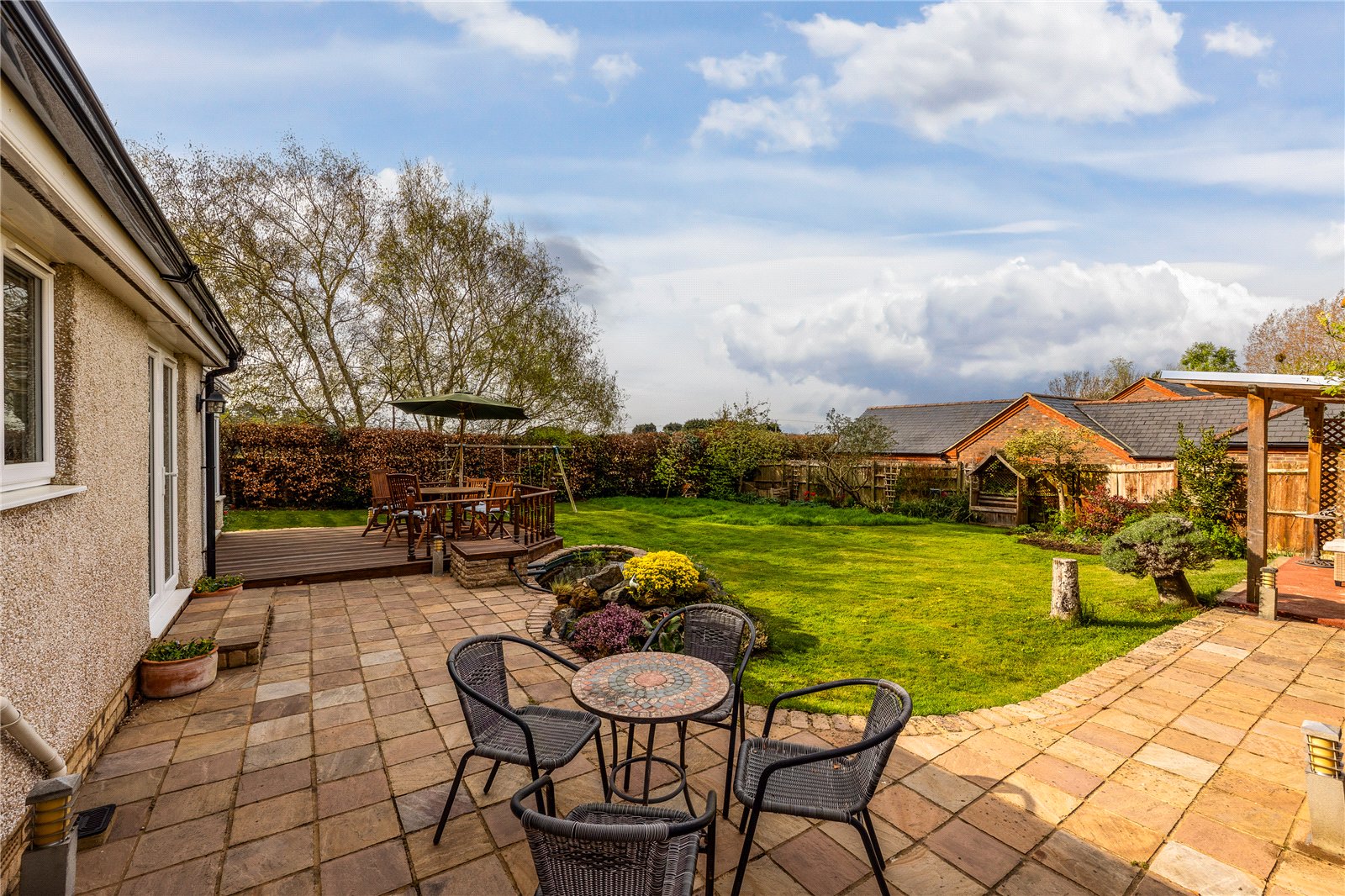 - Generous rear garden with various seating areas & well stocked borders