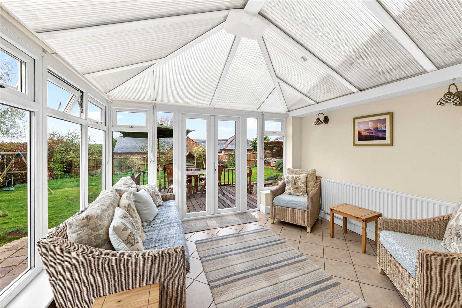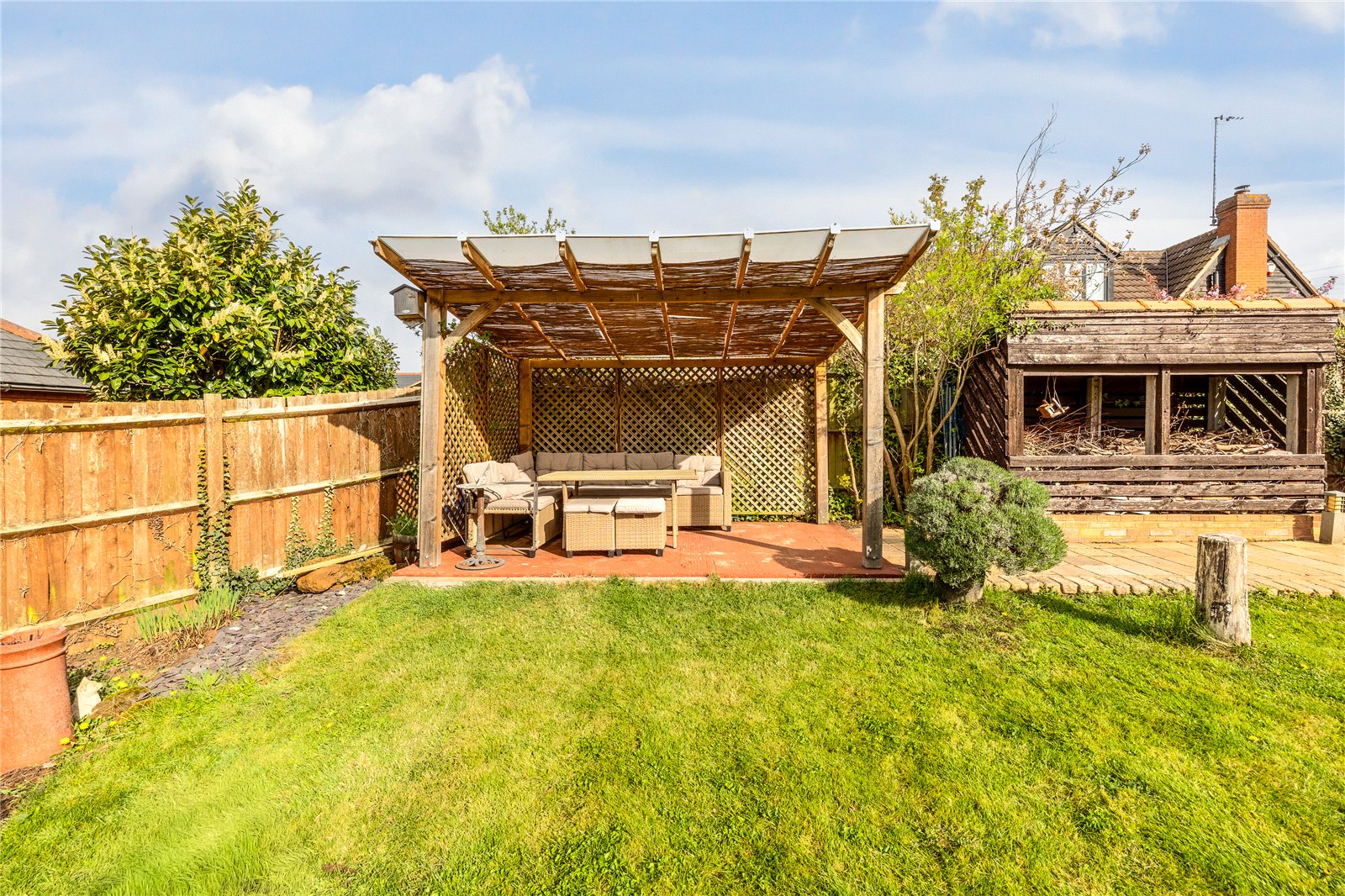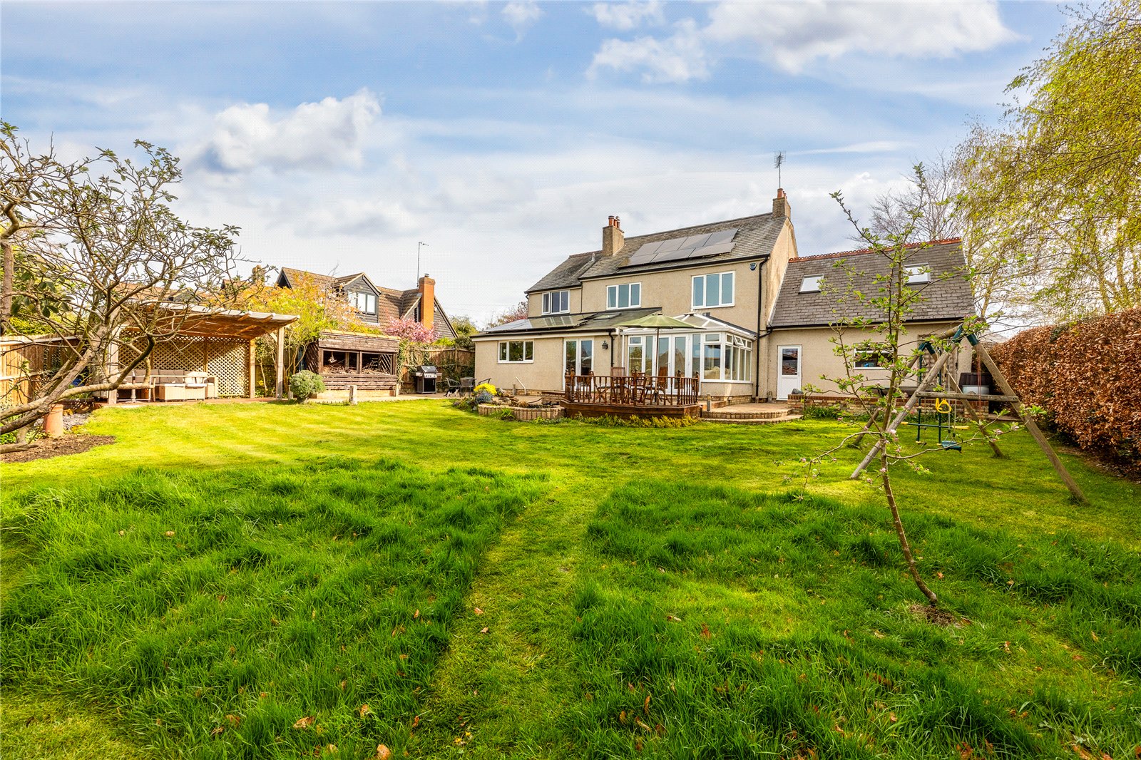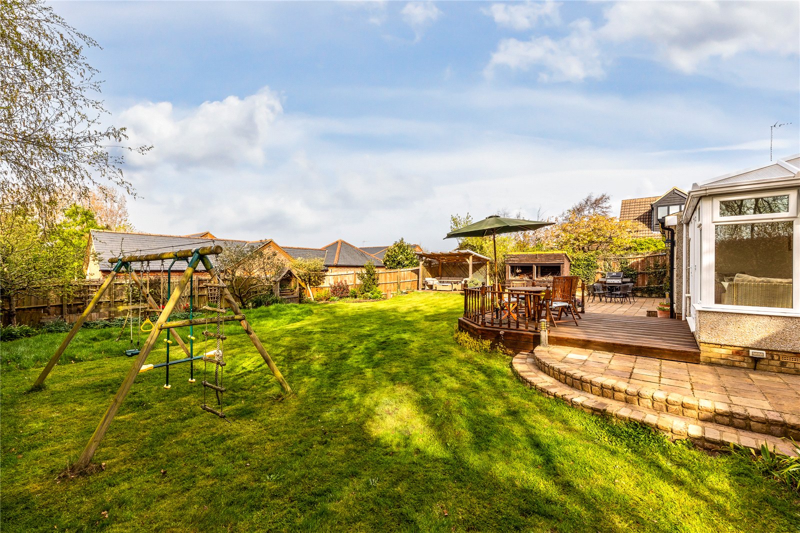 - Generous rear garden with various seating areas & well stocked borders