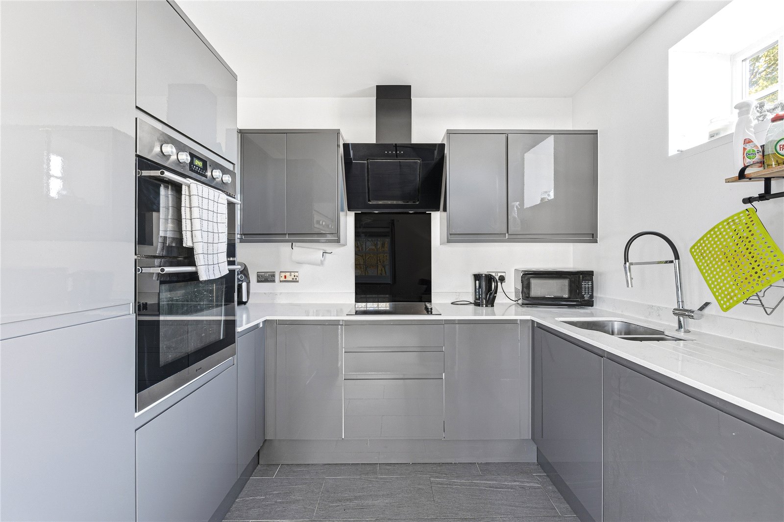 - Contemporary kitchen with various integrated appliances