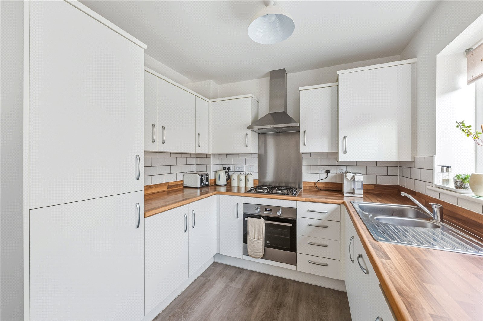 - Contemporary kitchen/diner with various integrated appliances & overlooking the garden
