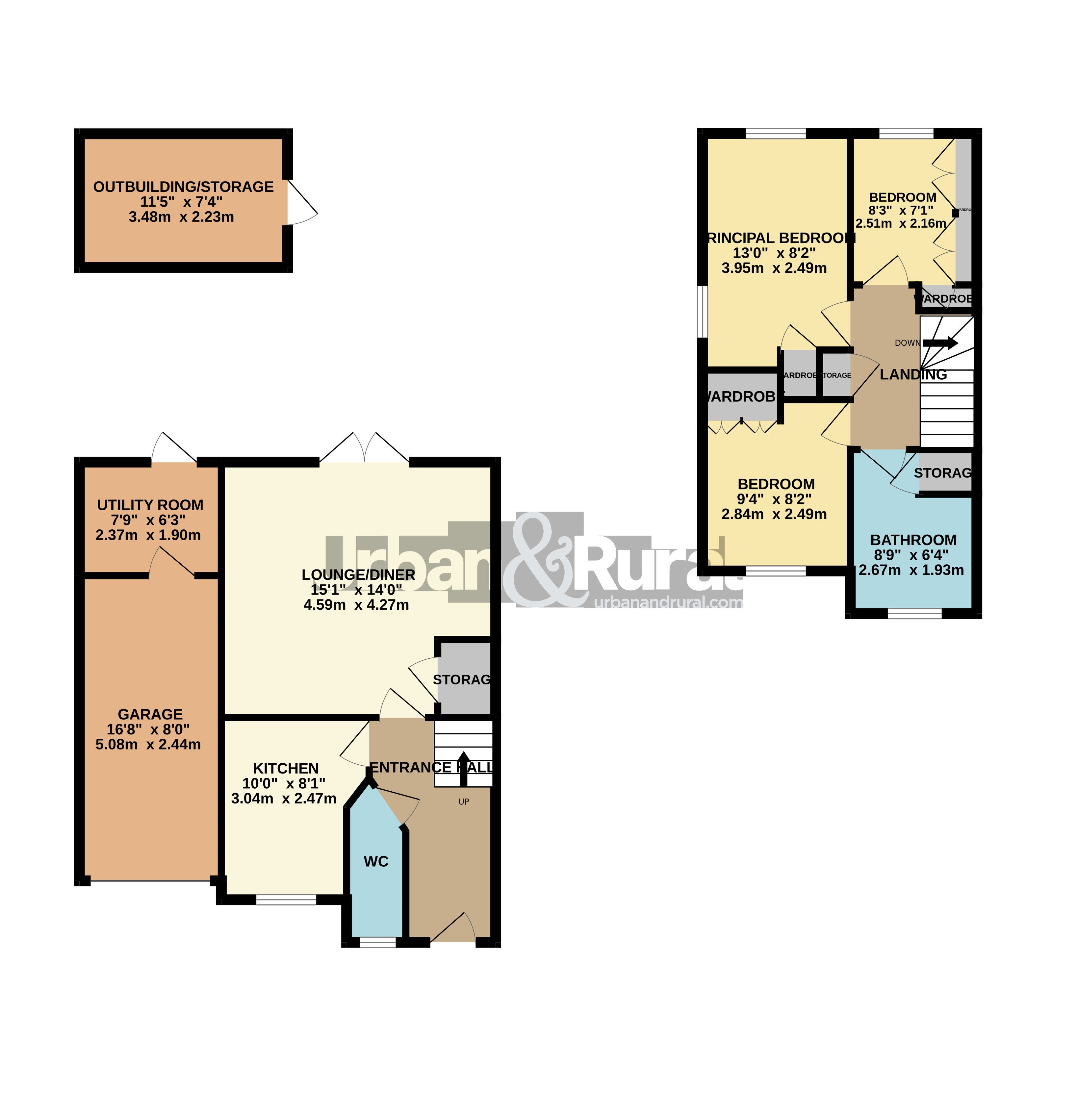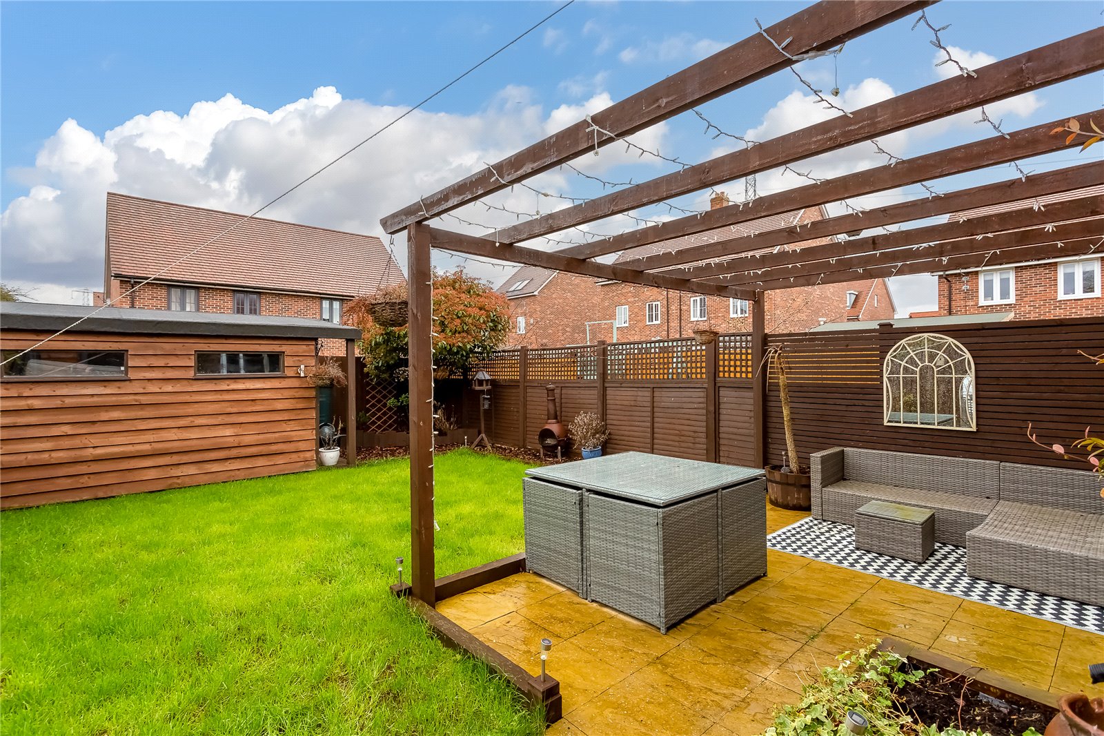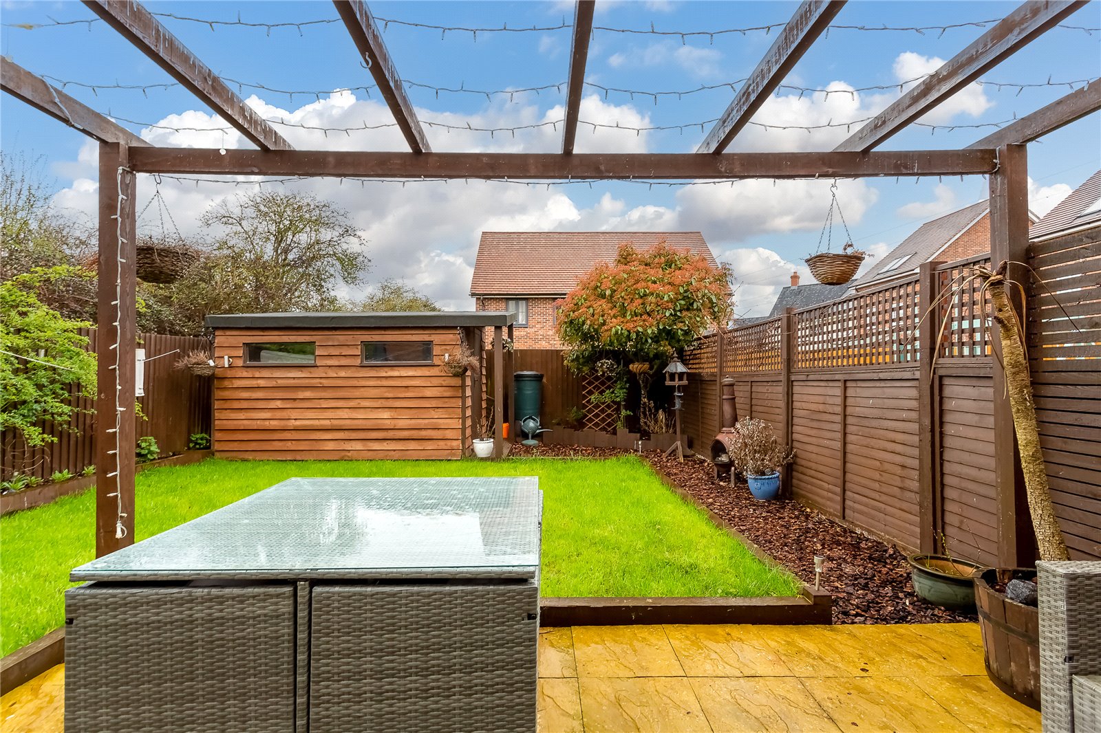 - Landscaped garden with detached cabin/storage