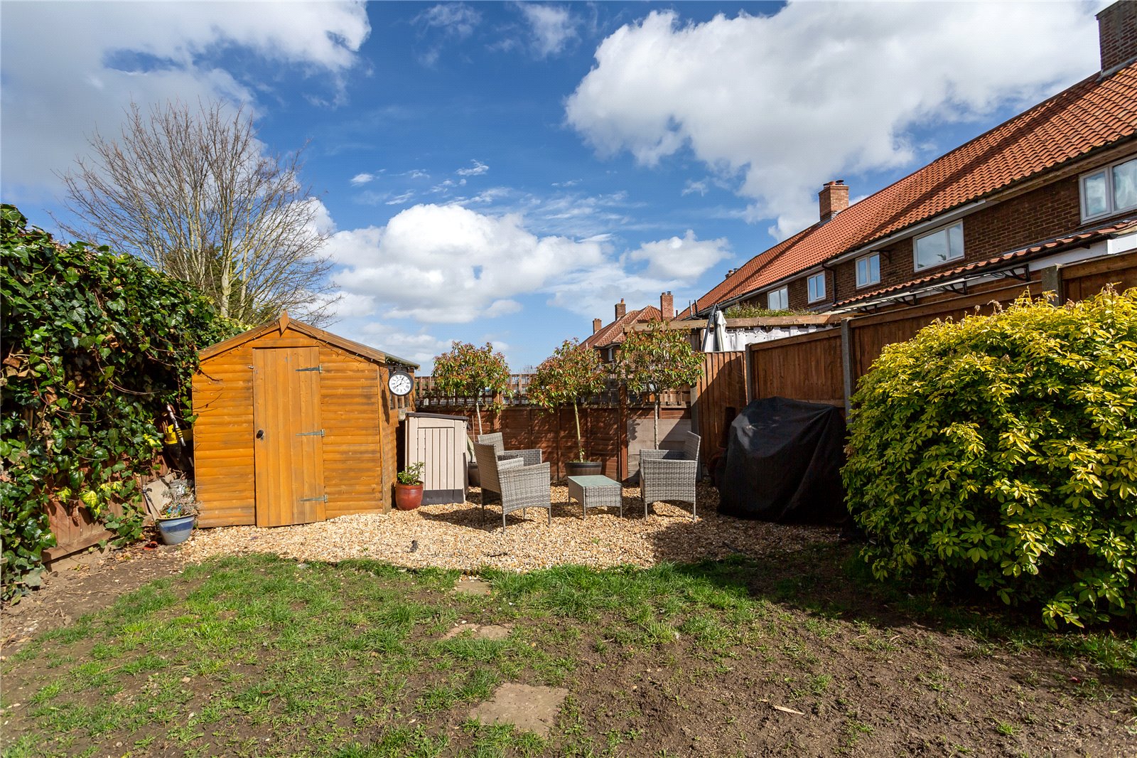 - Low maintenance lawned garden to rear with versatile brick-built outbuilding