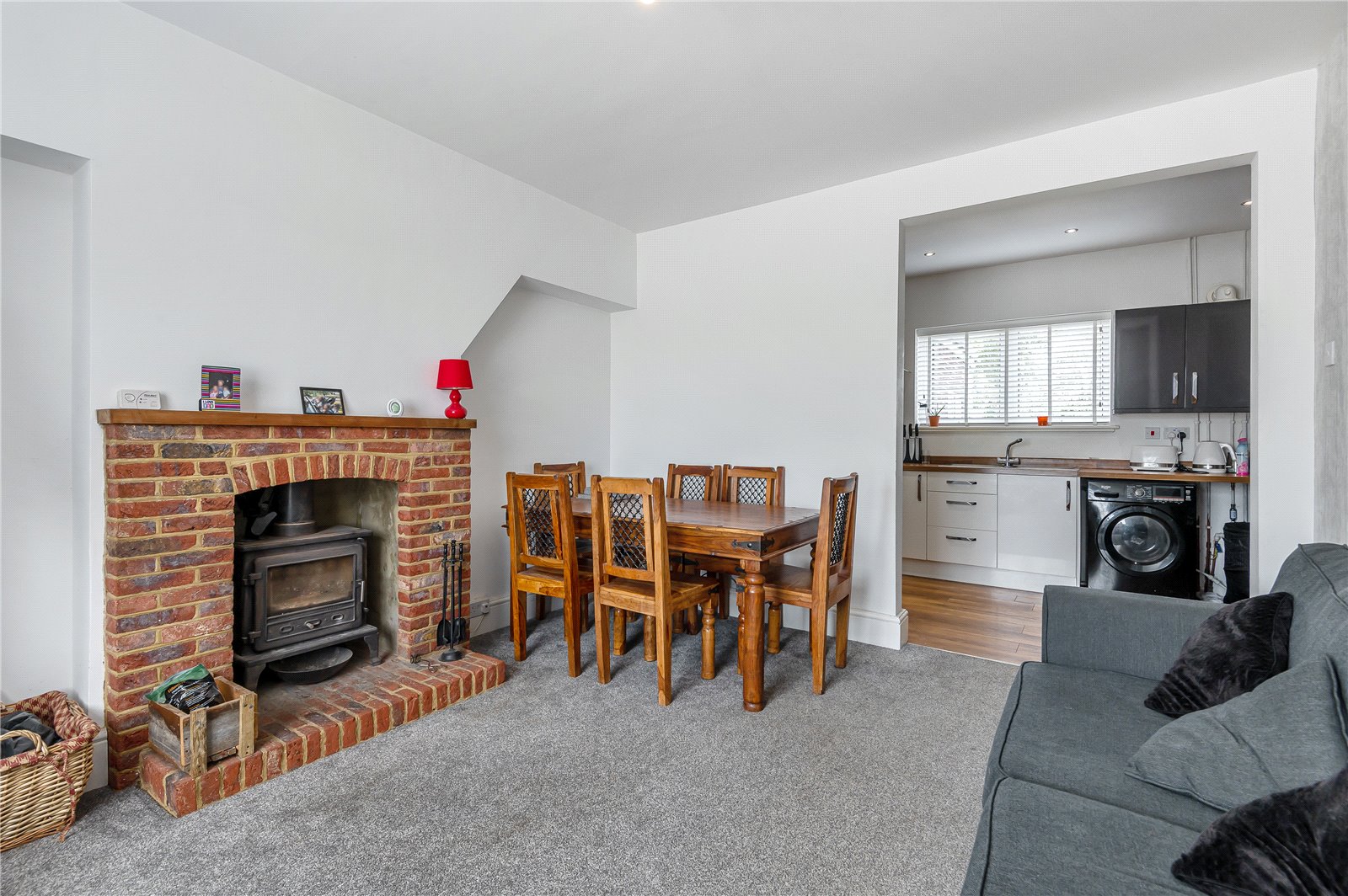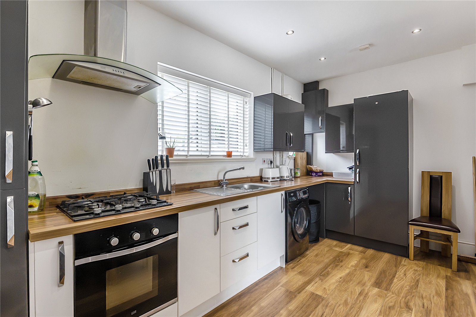 Approach to the property is via a block paved driveway which allows parking for one to two vehicles. Shingle edging runs to one side. A white composite front door opens into the hallway which has stairs directly ahead to the first-floor accommodation. To the left-hand side entry is provided to the living room, this has been decorated in a range of neutral tones and hues and has a superb wood burning stove set within an attractive brick fireplace with raised hearth. This creates a real focal point for the room, and even allows enough space for a dining table and chairs to one corner if required. Beyond here the kitchen/breakfast room spans the width of the back of the house and has been fitted with a comprehensive range of two-tone floor and wall mounted units incorporating lighter wooden work surfaces over. Several integrated appliances have been cleverly woven into the design including a four-ring hob, under counter oven, and stainless-steel extractor hood. Space has also been afforded for other free-standing appliances including a fridge/freezer and washing machine. Recessed ceiling spotlights and two windows overlooking the rear garden complete the look.
