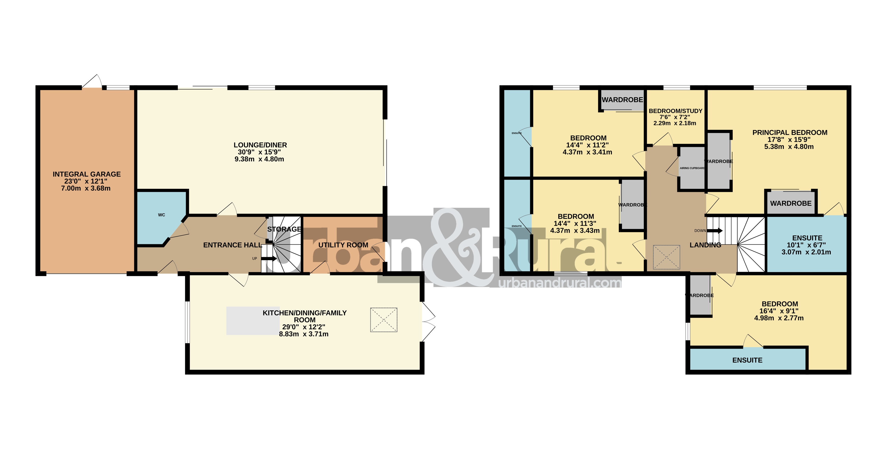- Four double bedrooms with fitted wardrobes/en-suites & separate study/home office or occasional fifth bedroom
