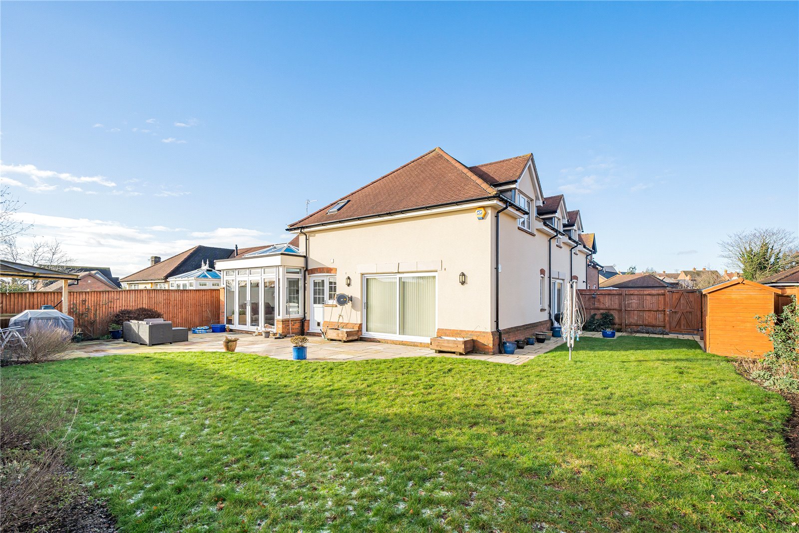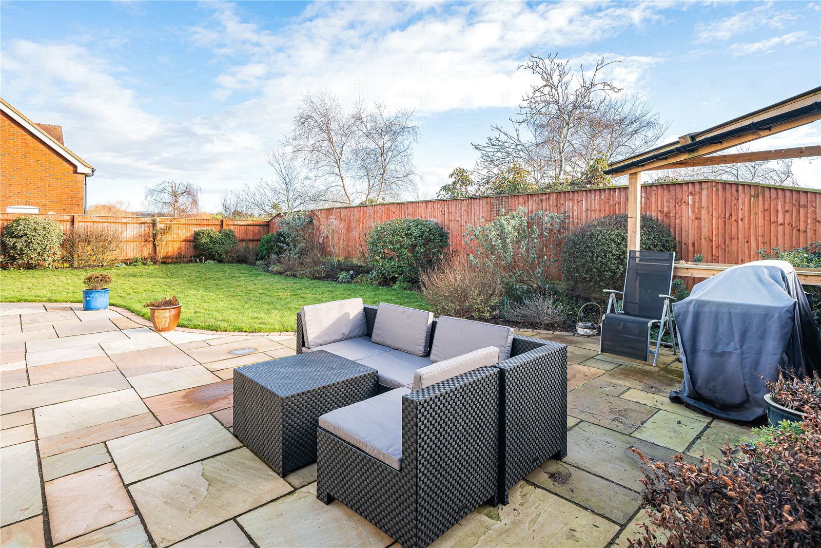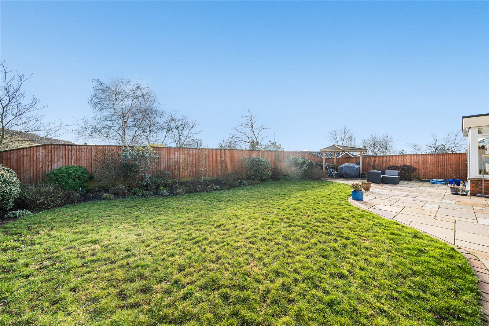 - Well proportioned south/easterly facing lawned wrap around garden with patio
